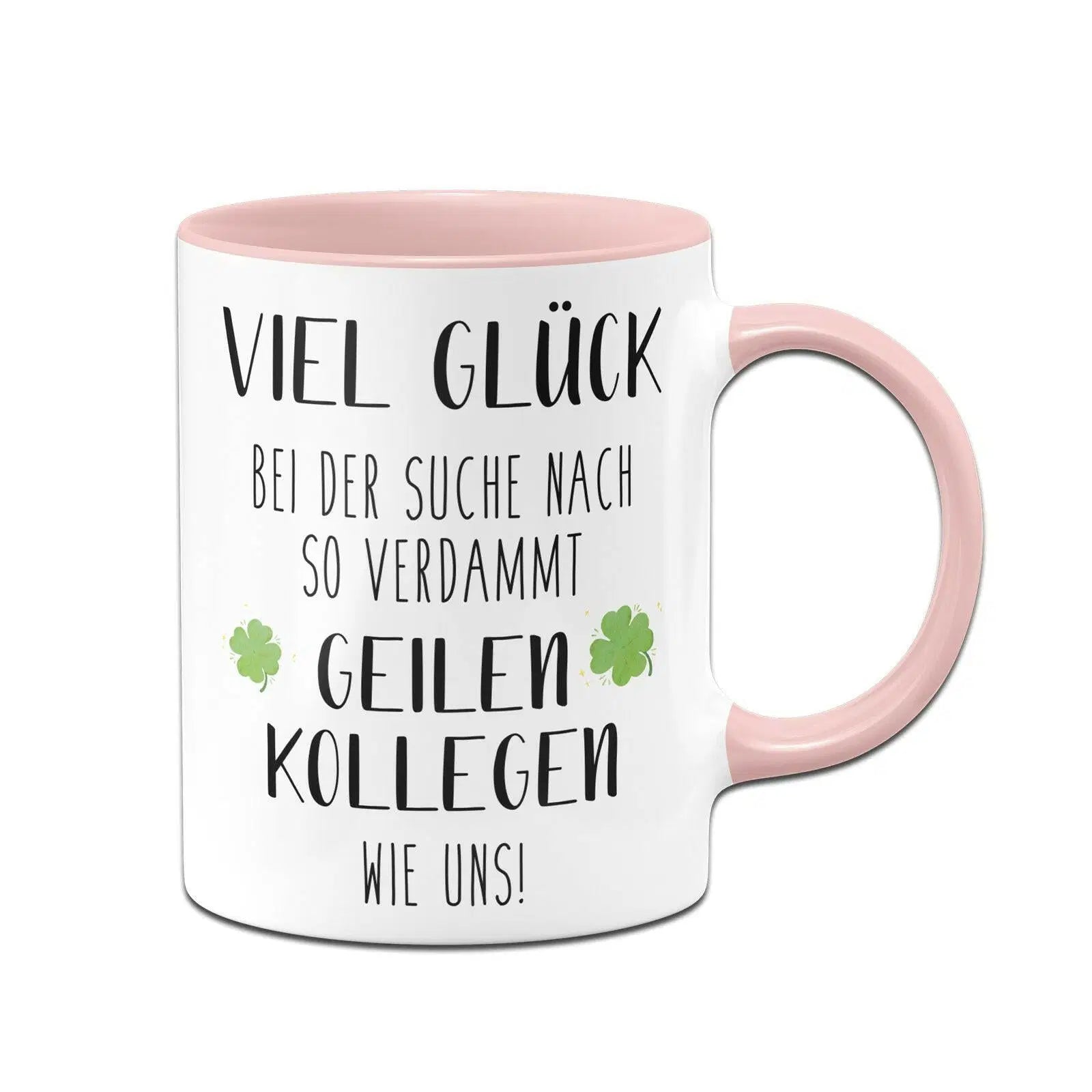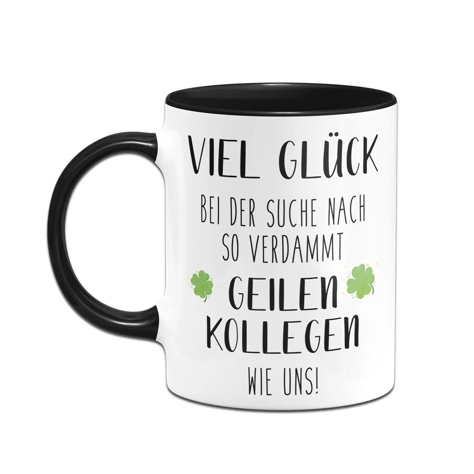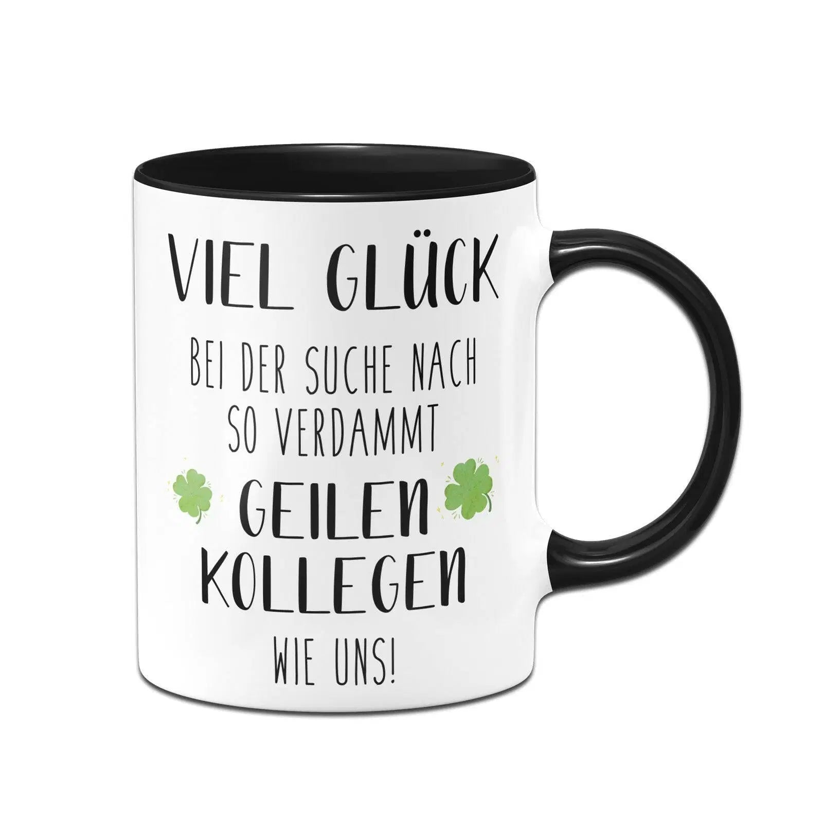 Tasse mit Spruch: Viel Glück bei der Suche nach so verdammt geilen Kollegen wie uns! 🍀
