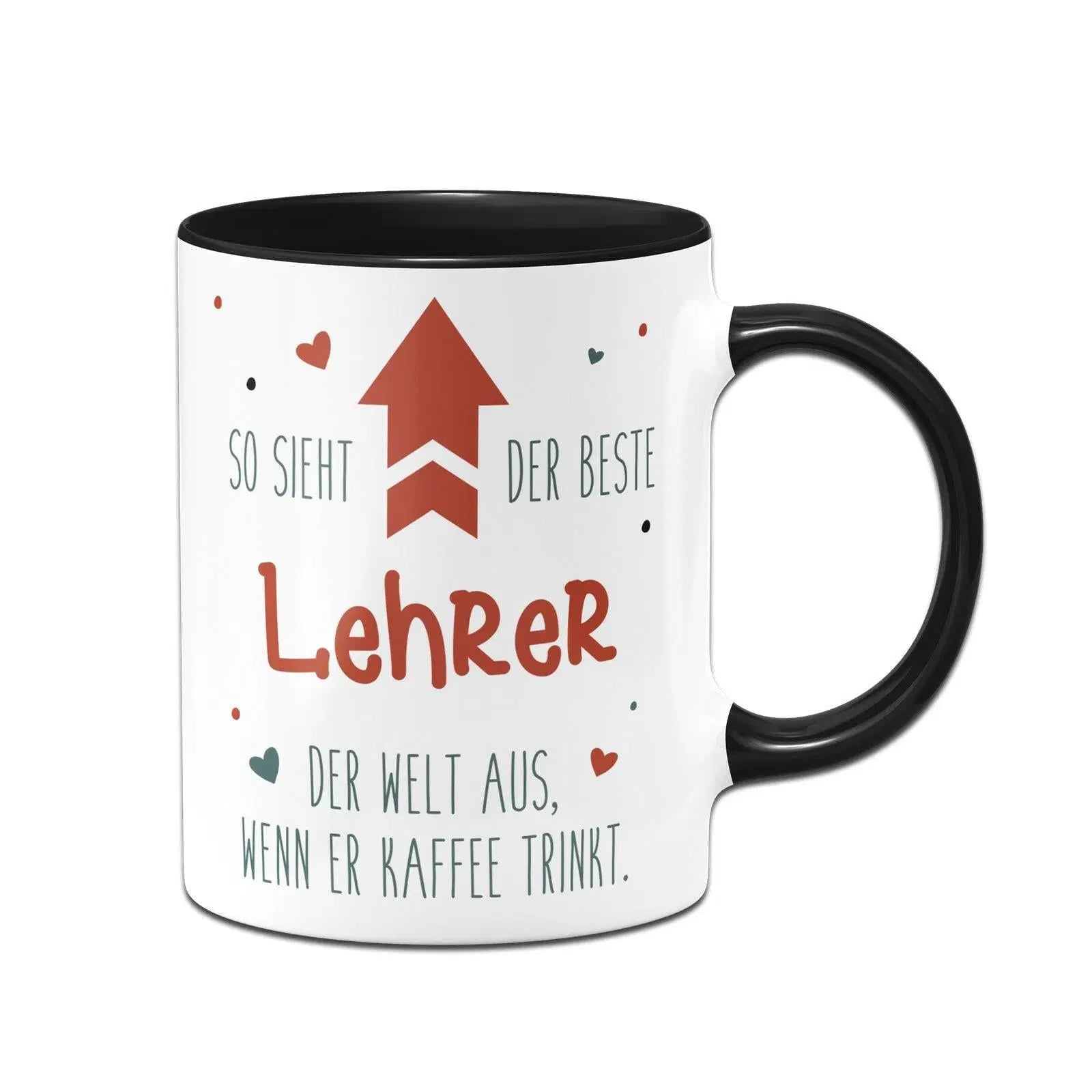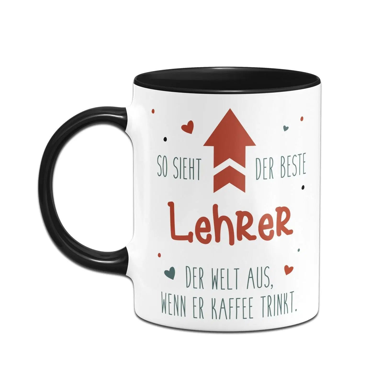 Tasse mit Spruch: So sieht der beste Lehrer der Welt aus ⬆️ wenn er Kaffee trinkt. ❤️