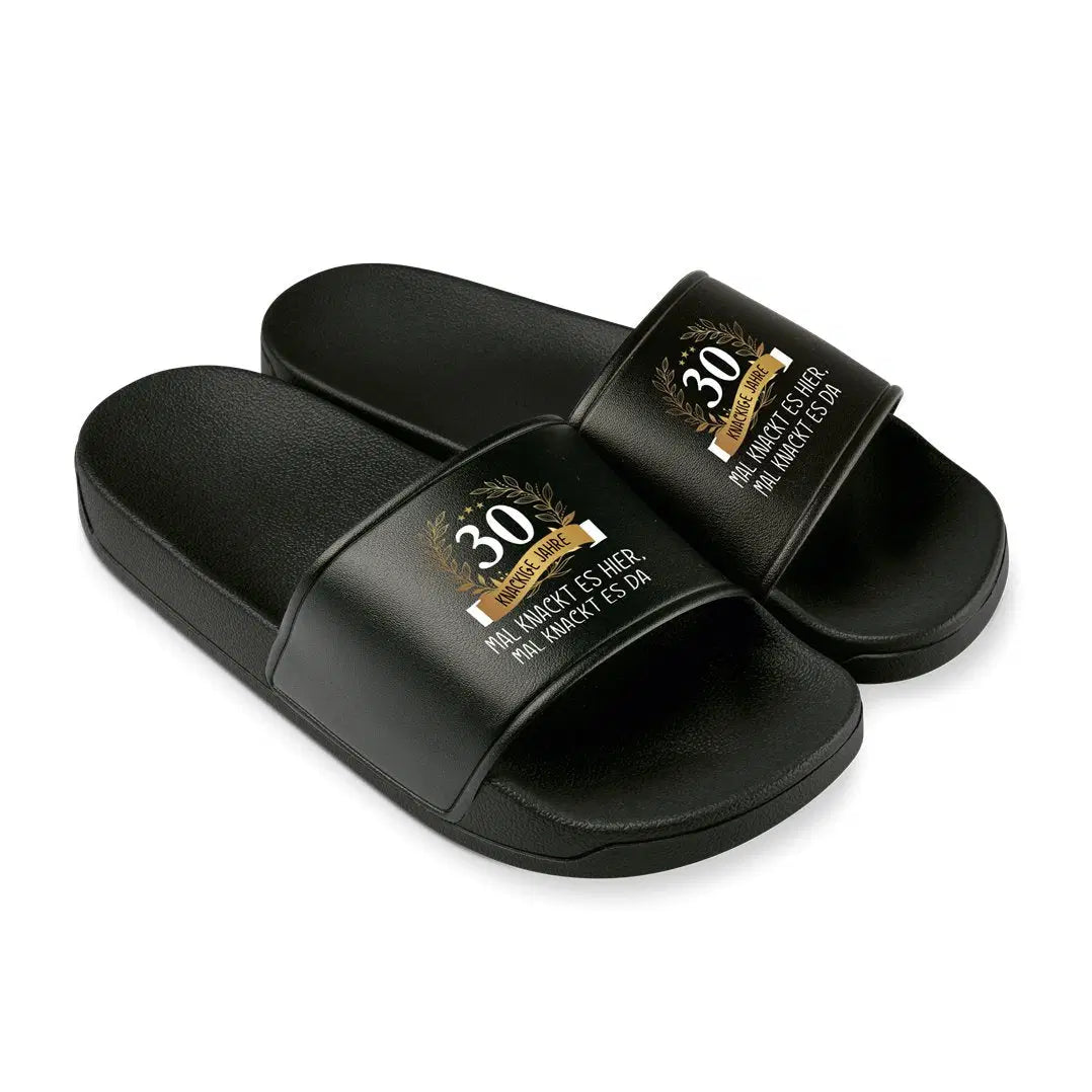 Überraschen Sie einen besonderen Menschen an seinem runden Geburtstag mit unseren humorvollen Badeschuhen. Mit dem lustigen Spruch "Mal knackt es hier, mal knackt es da - [Zahl] - knackige Jahre" sind sie das perfekte Geschenk, das garantiert für einen Lacher sorgt!