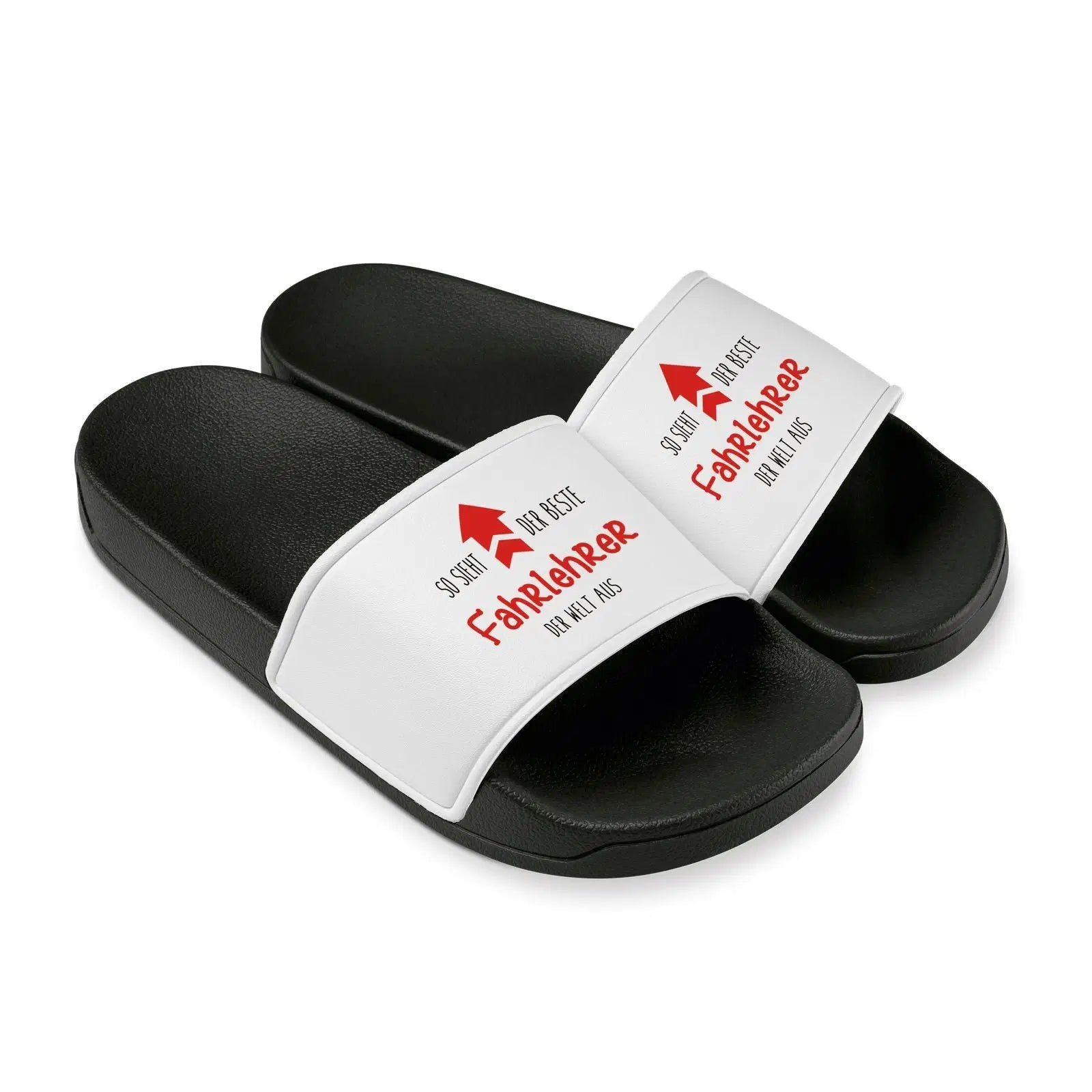 Badeschuhe mit dem Spruch: So sieht der beste Fahrlehrer der Welt aus