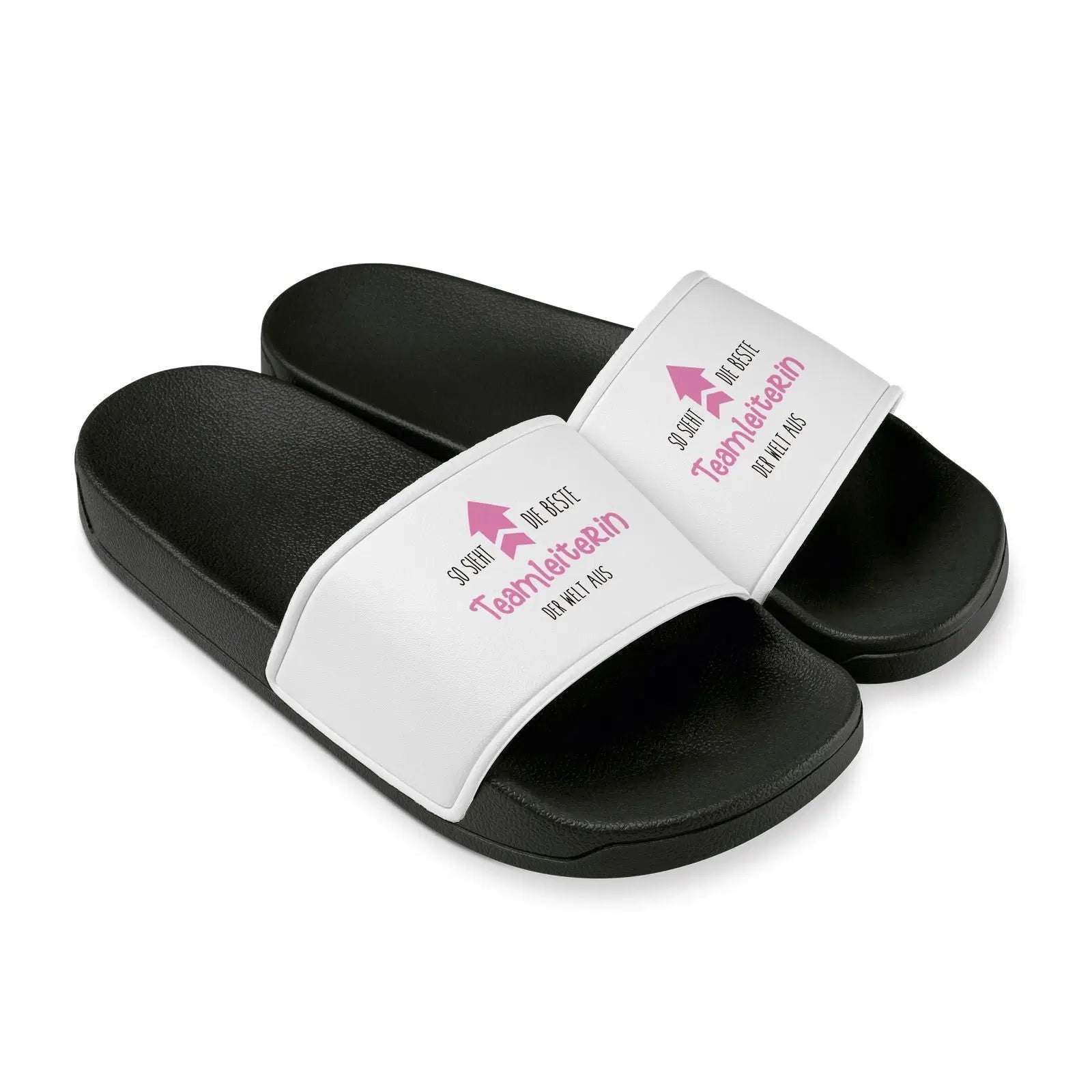 Badeschuhe mit dem Spruch: So sieht die beste Teamleiterin der Welt aus.