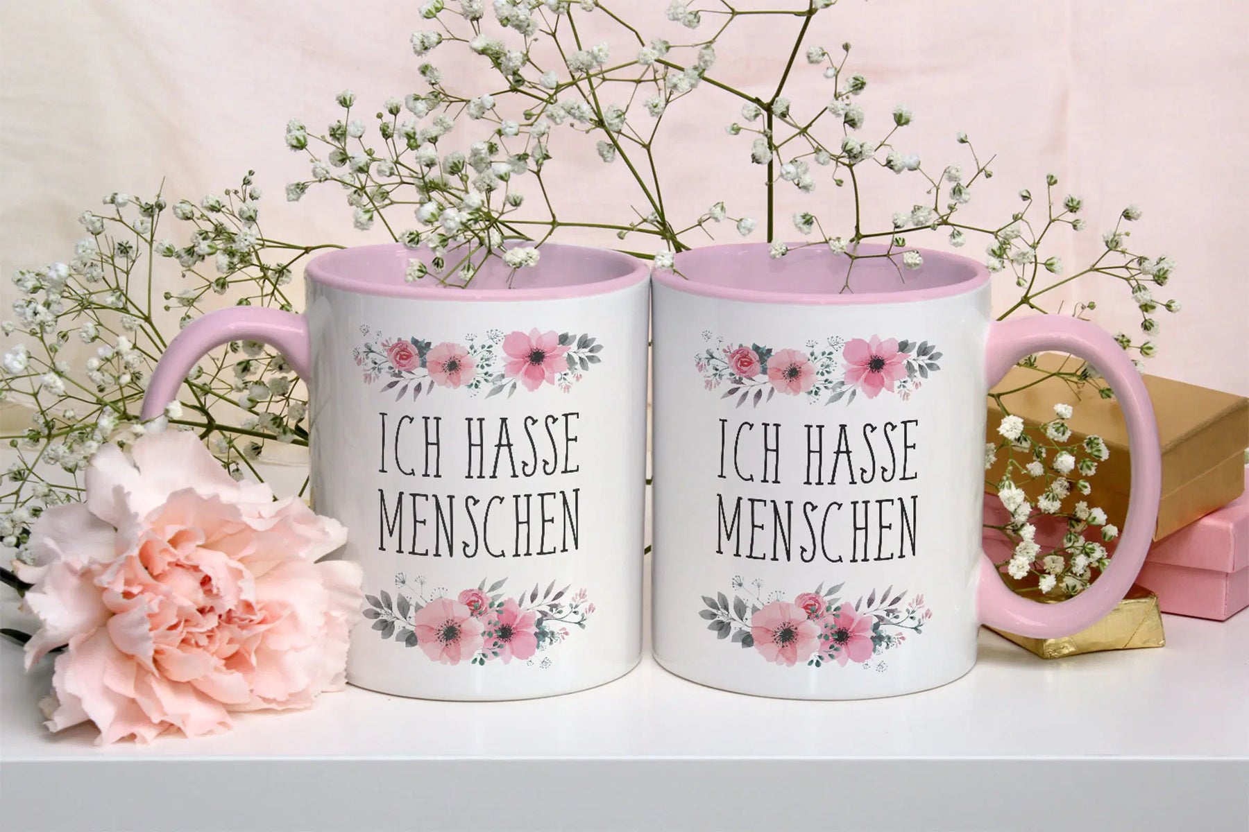 Blümchen-Tasse 🌸 mit Spruch: Ich hasse Menschen