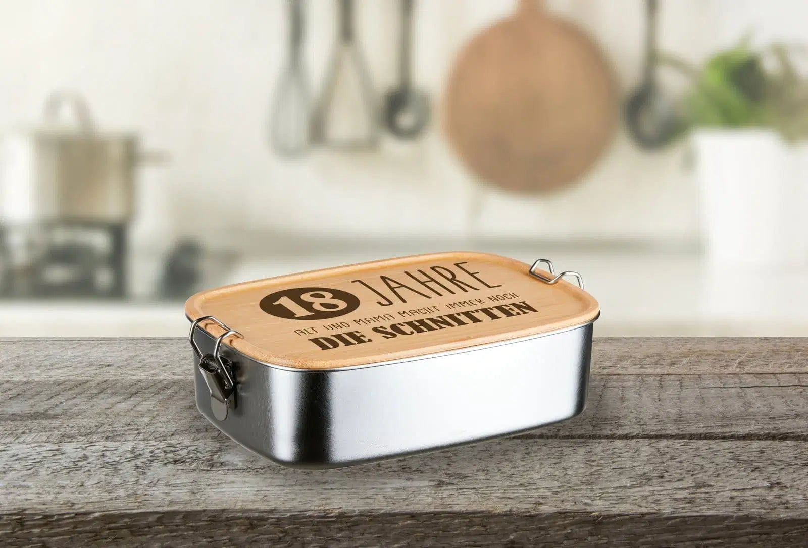 Brotdose aus Edelstahl mit Bambusdeckel & Verschluss