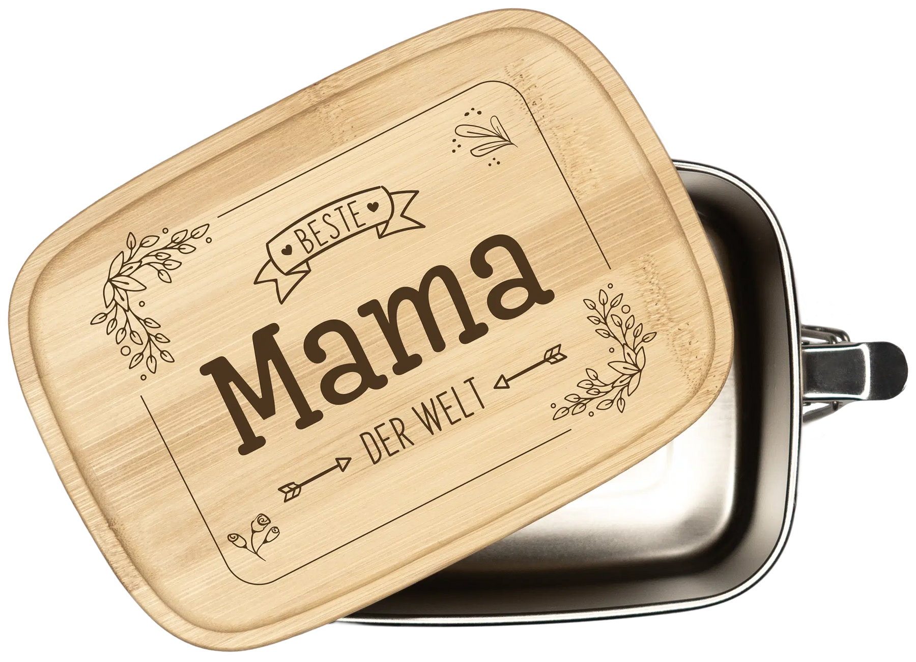 Brotdose - Beste Mama der Welt - Edelstahl mit Bambusdeckel