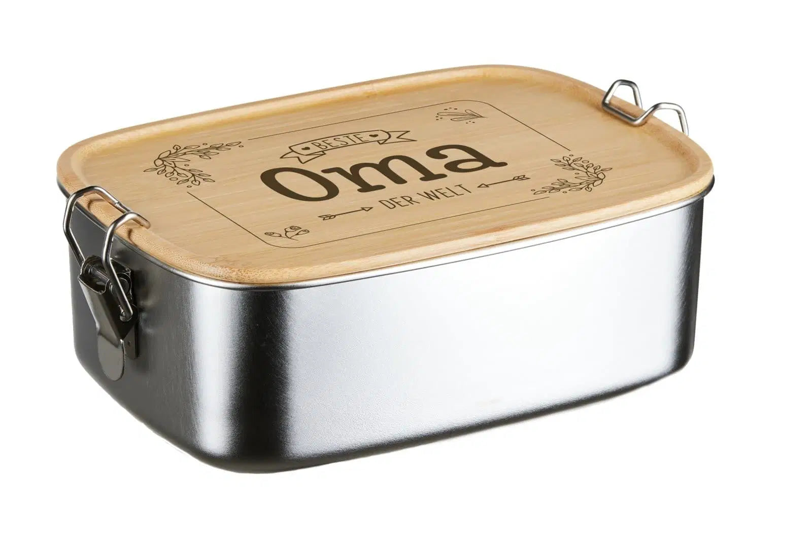 Brotdose aus Edelstahl mit Bambusdeckel & Verschluss