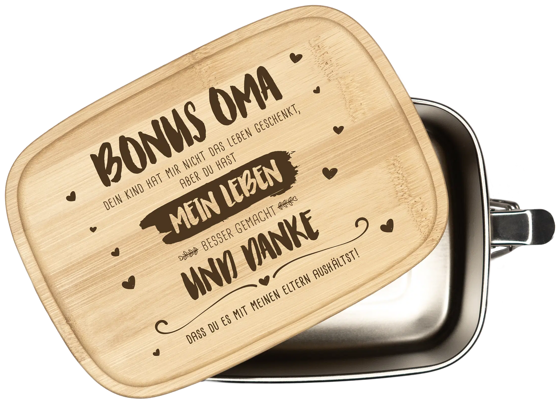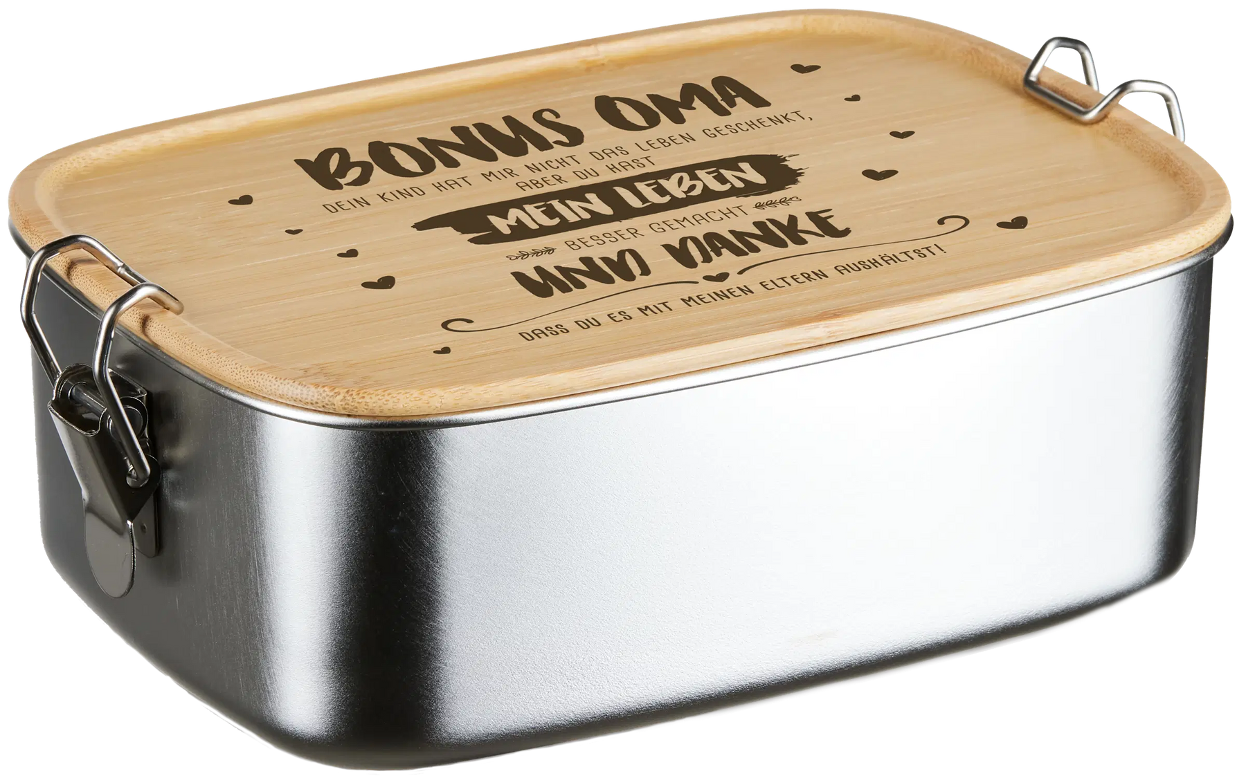 Brotdose aus Edelstahl mit Bambusdeckel & Verschluss