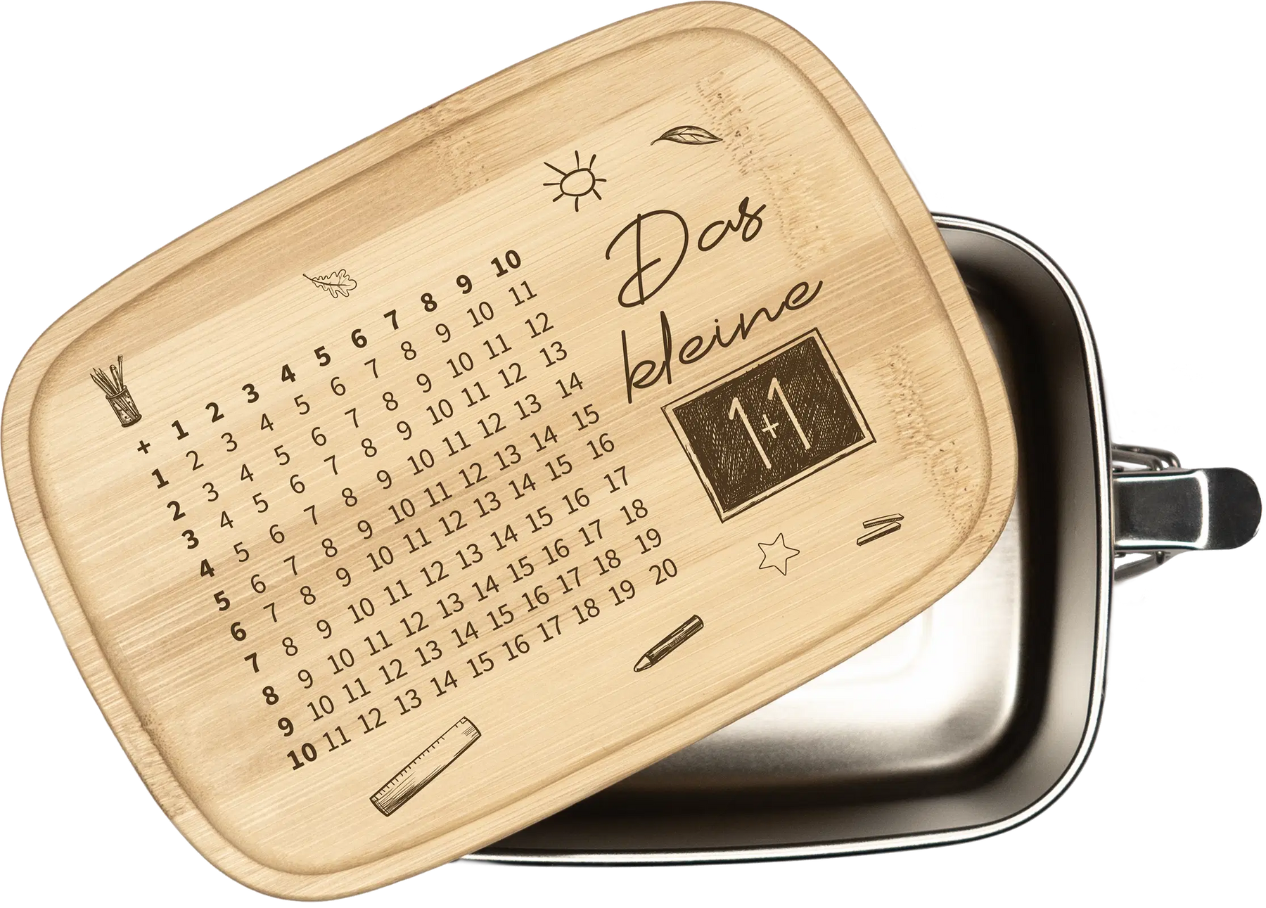 Grafik ist per Lasergravur graviert mit dem Spruch: Das kleine 1+1 ☀️✏️