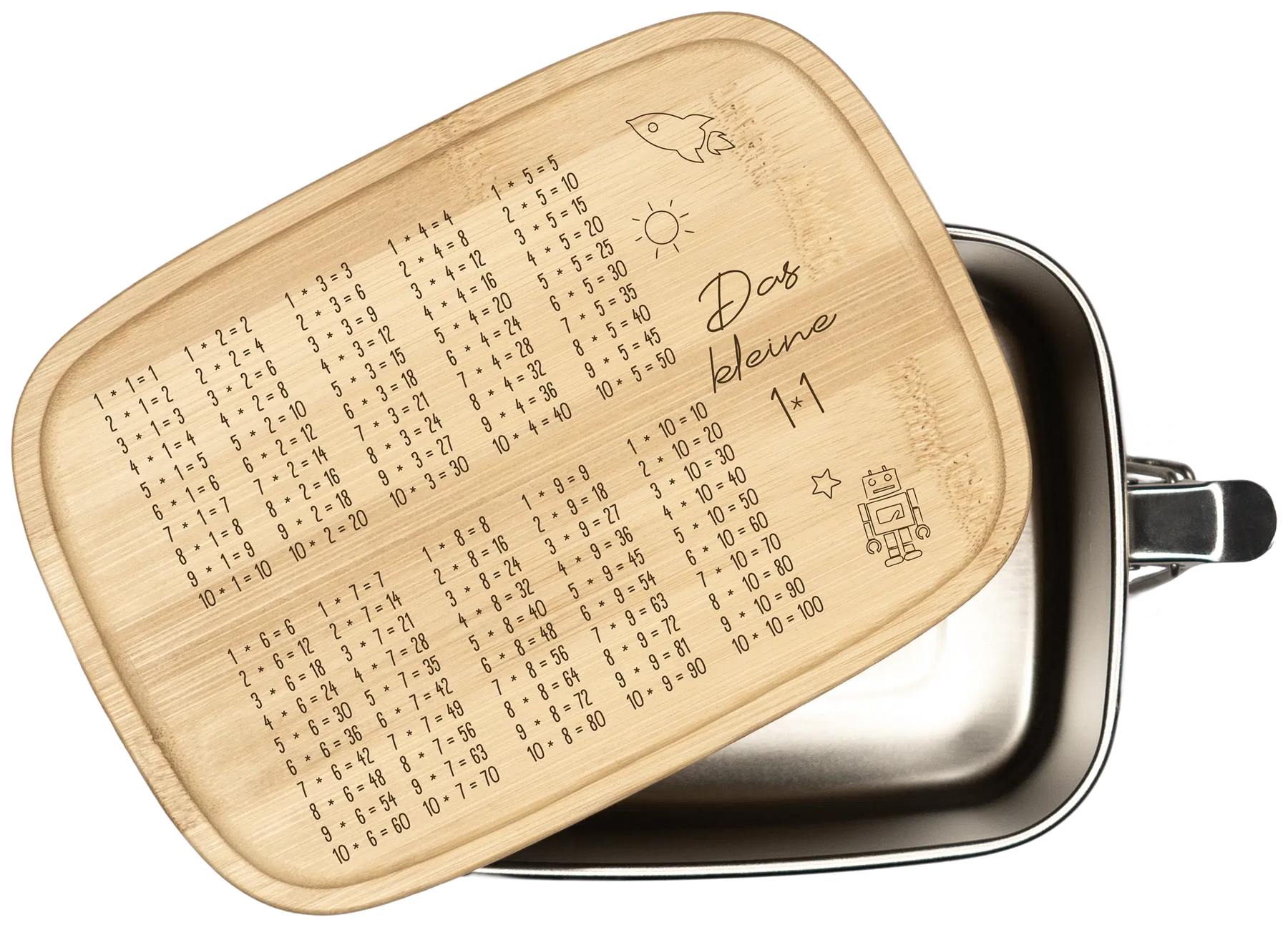 Brotdose aus Edelstahl mit Bambusdeckel & Verschluss