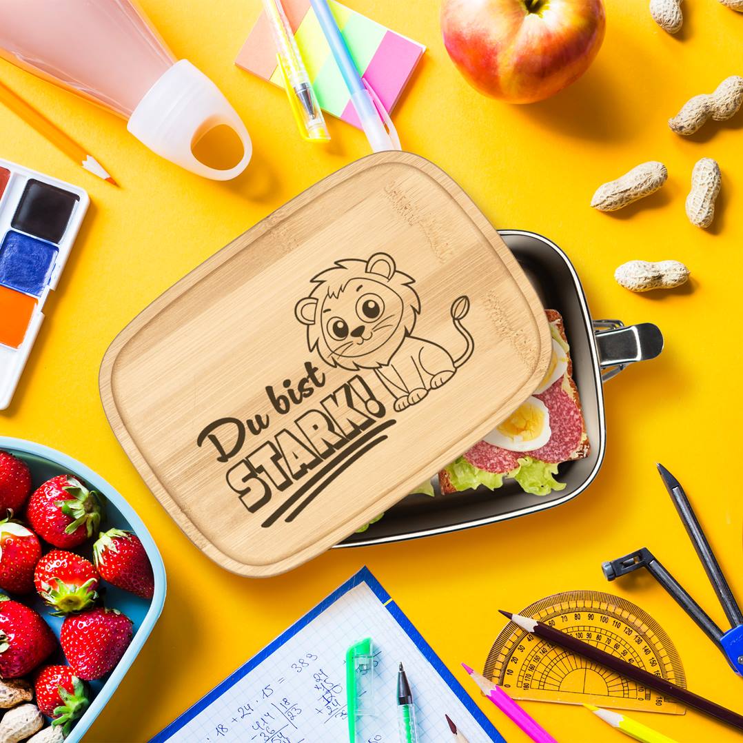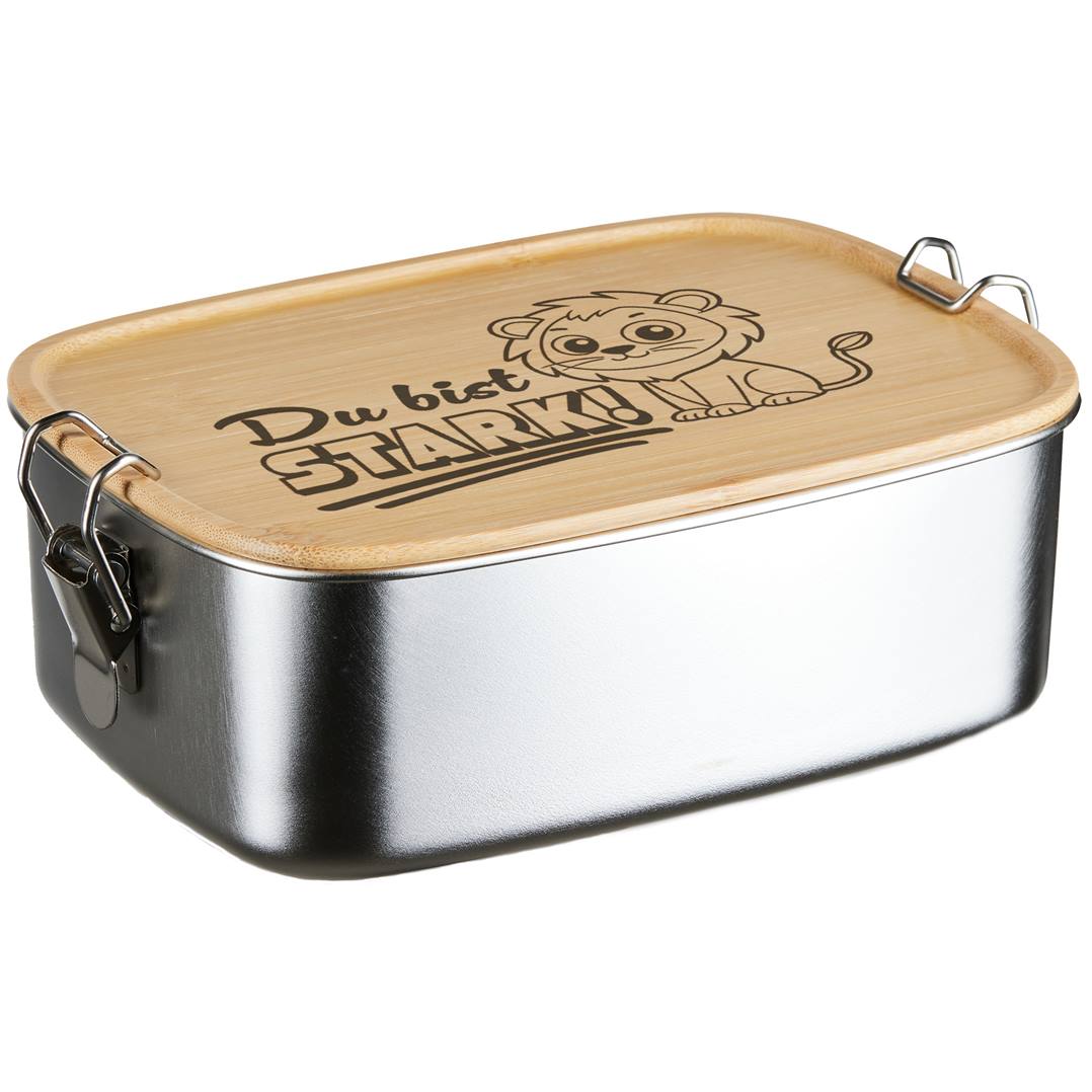 Brotdose - Du bist stark (Löwe) - Edelstahl mit Bambusdeckel
