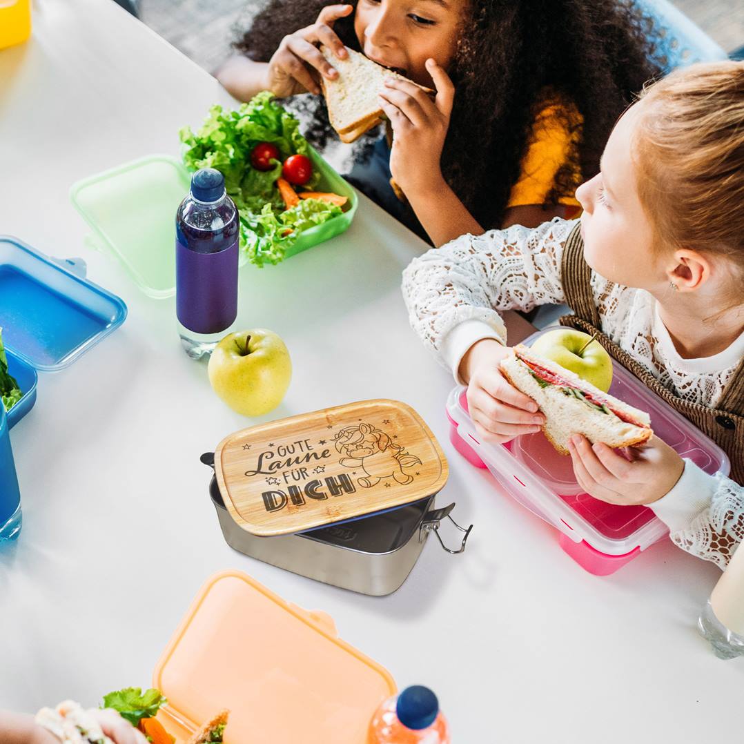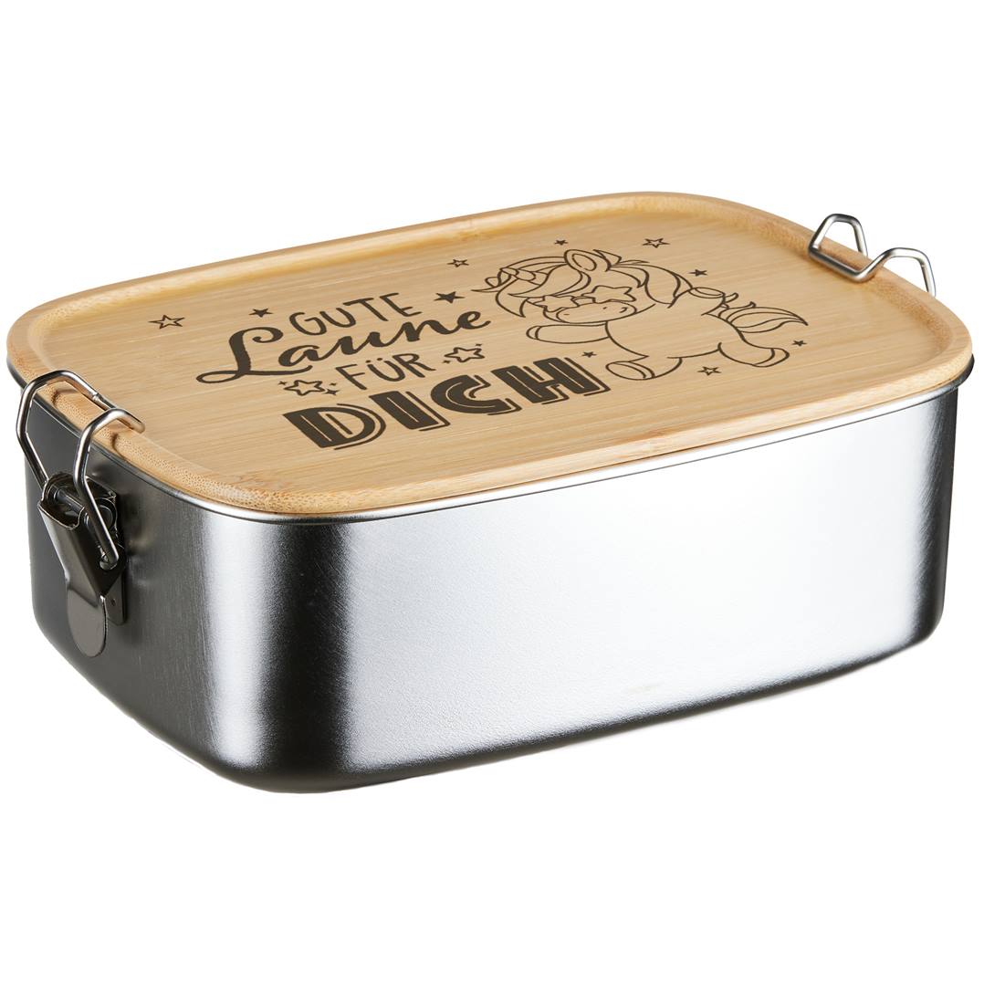 Brotdose - Gute Laune für Dich (Einhorn) - Edelstahl mit Bambusdeckel