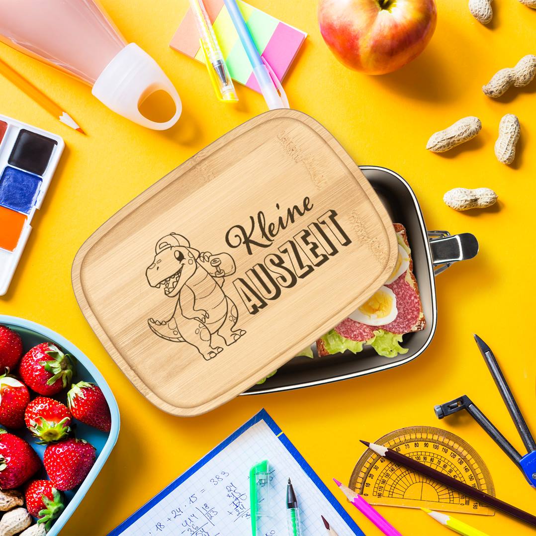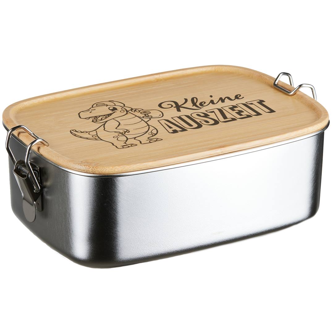 Brotdose - Kleine Auszeit (Dino) - Edelstahl mit Bambusdeckel