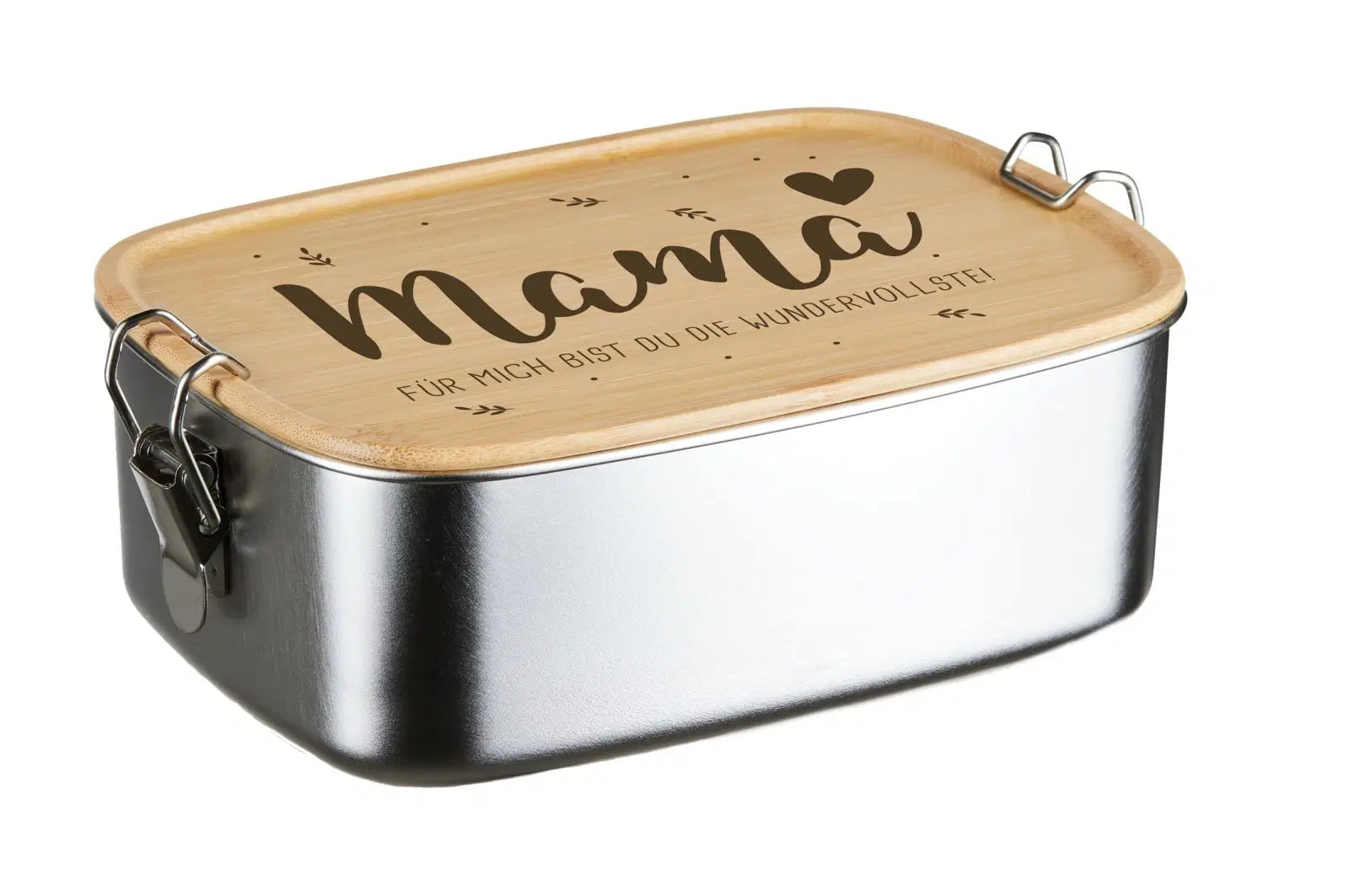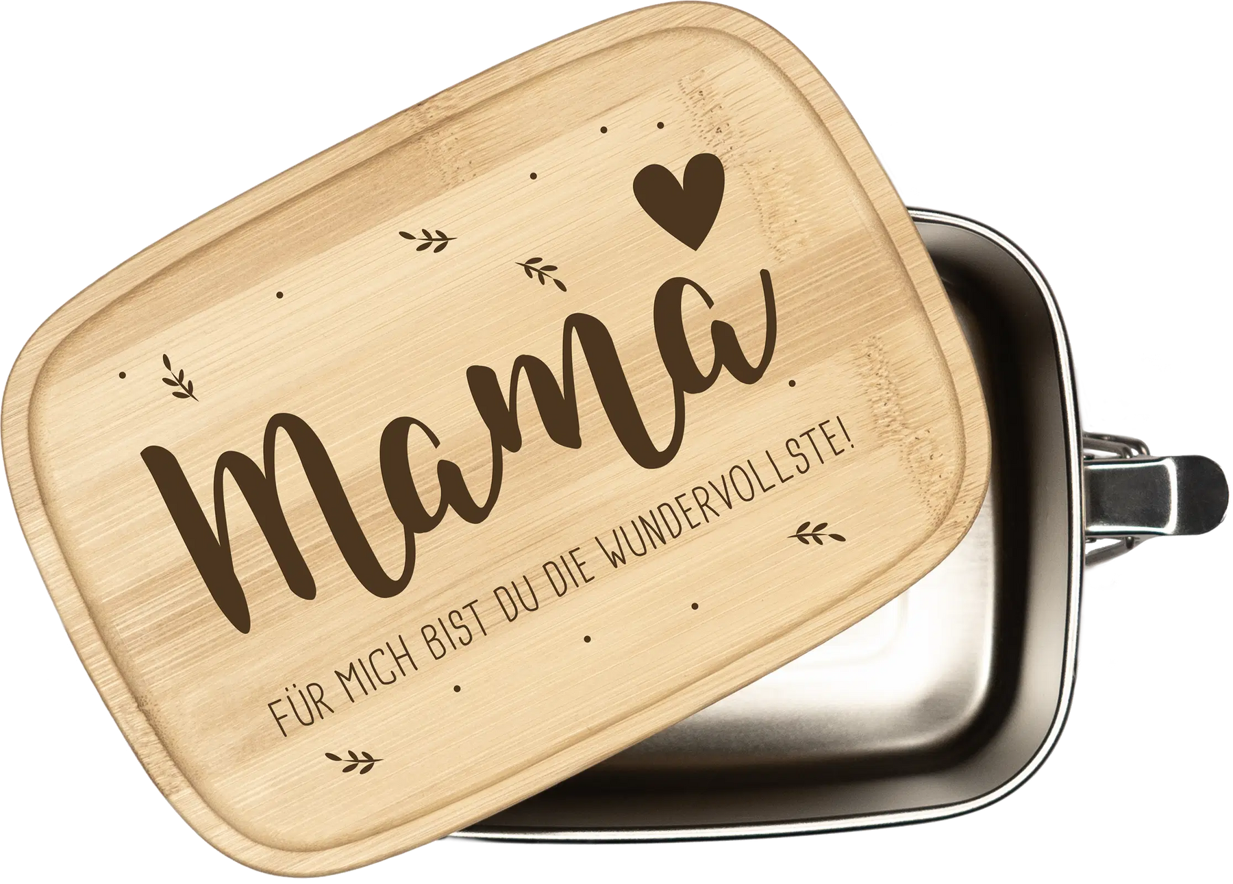 Brotdose - Mama für mich bist Du die Wundervollste! - Edelstahl mit Bambusdeckel