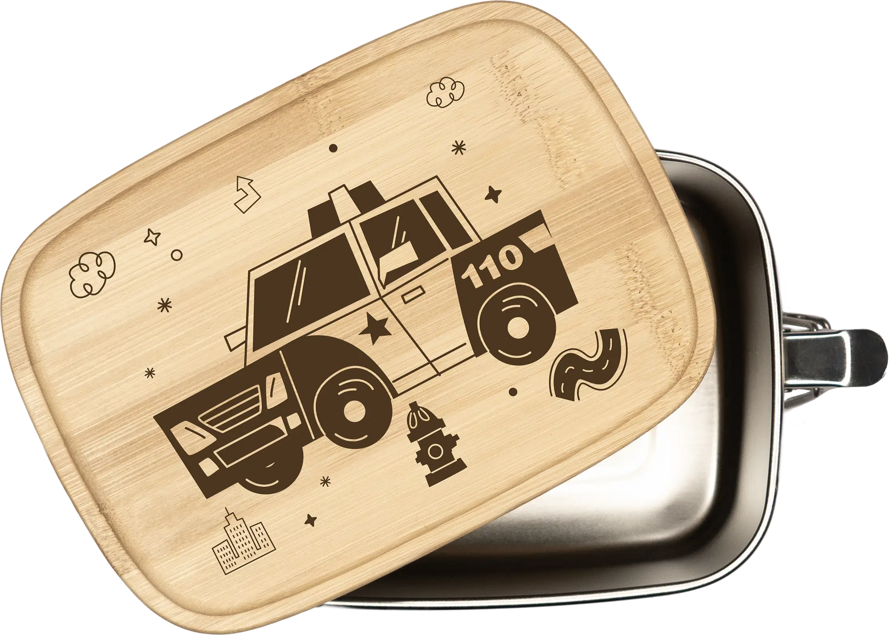 Grafik ist per Lasergravur graviert mit dem Motiv: Polizeiauto 🚓
