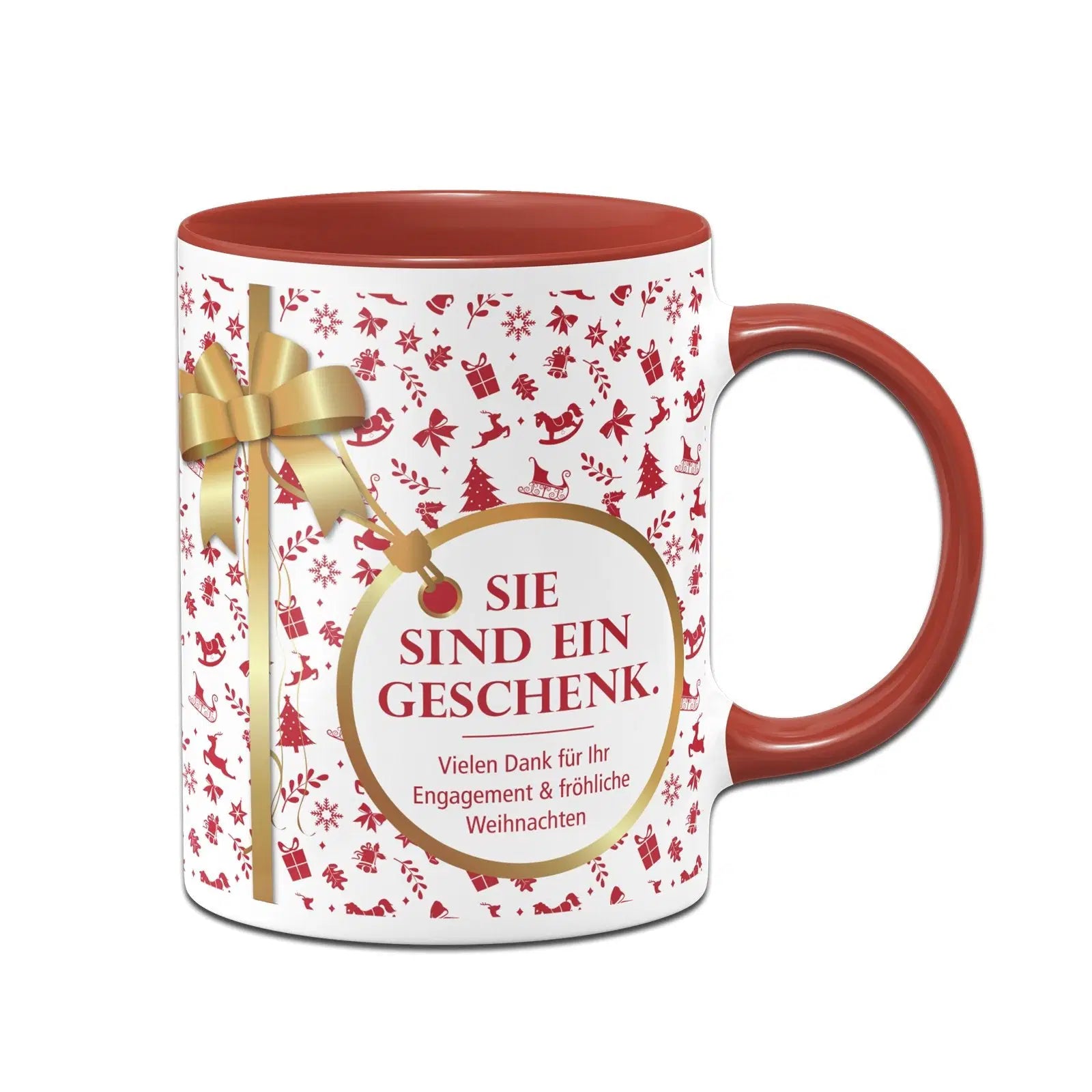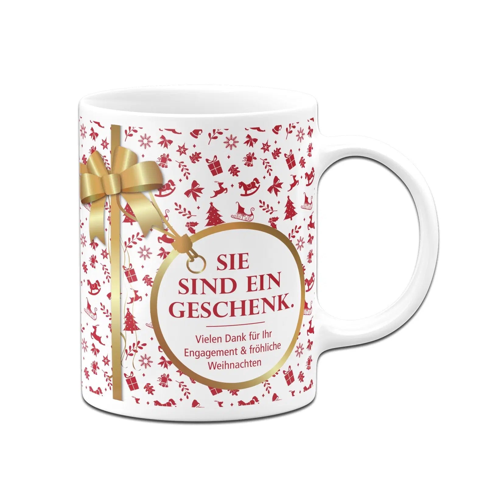 Tasse mit Spruch: Sie sind ein Geschenk. 🎁 Vielen Dank für Ihr Engagement & fröhliche Weihnachten