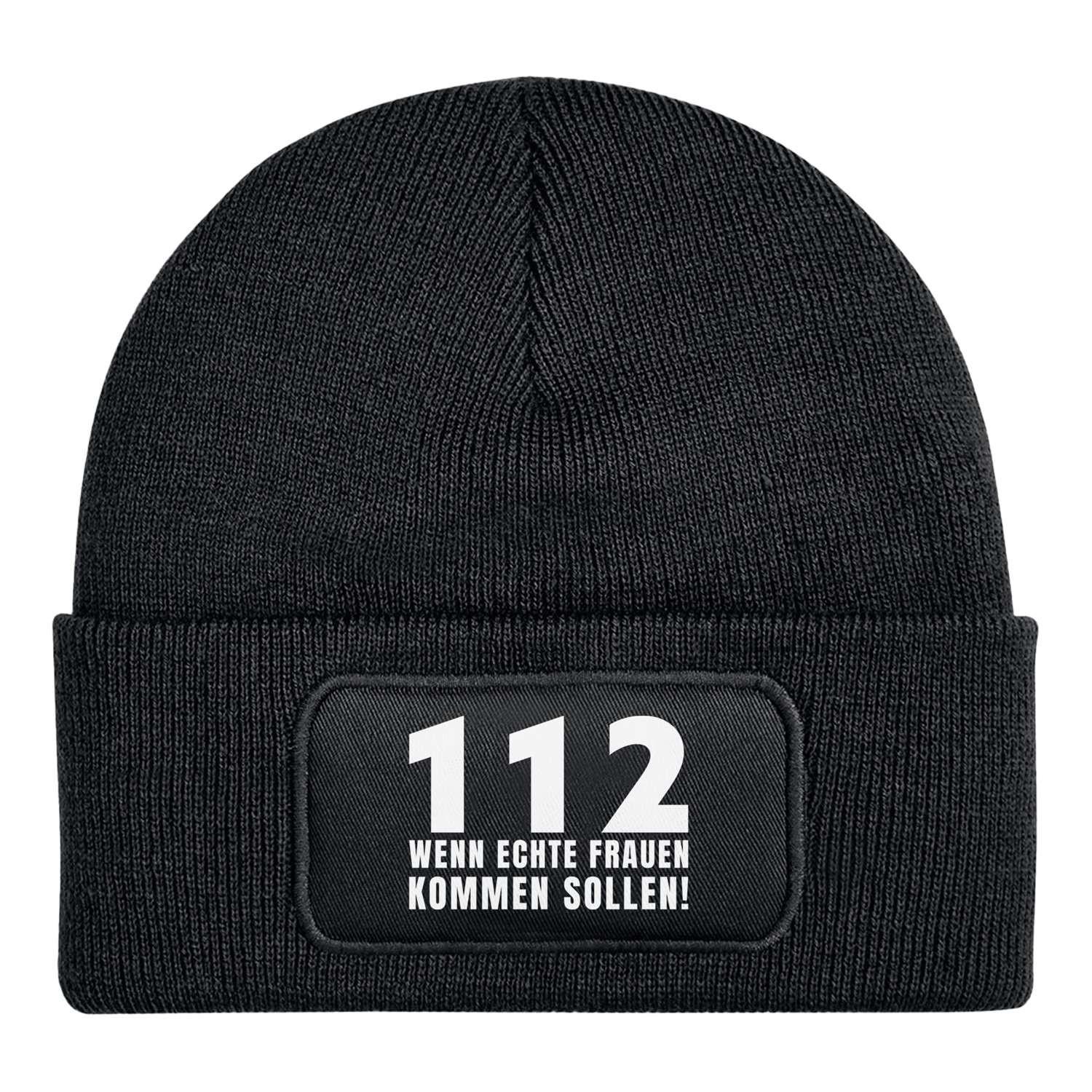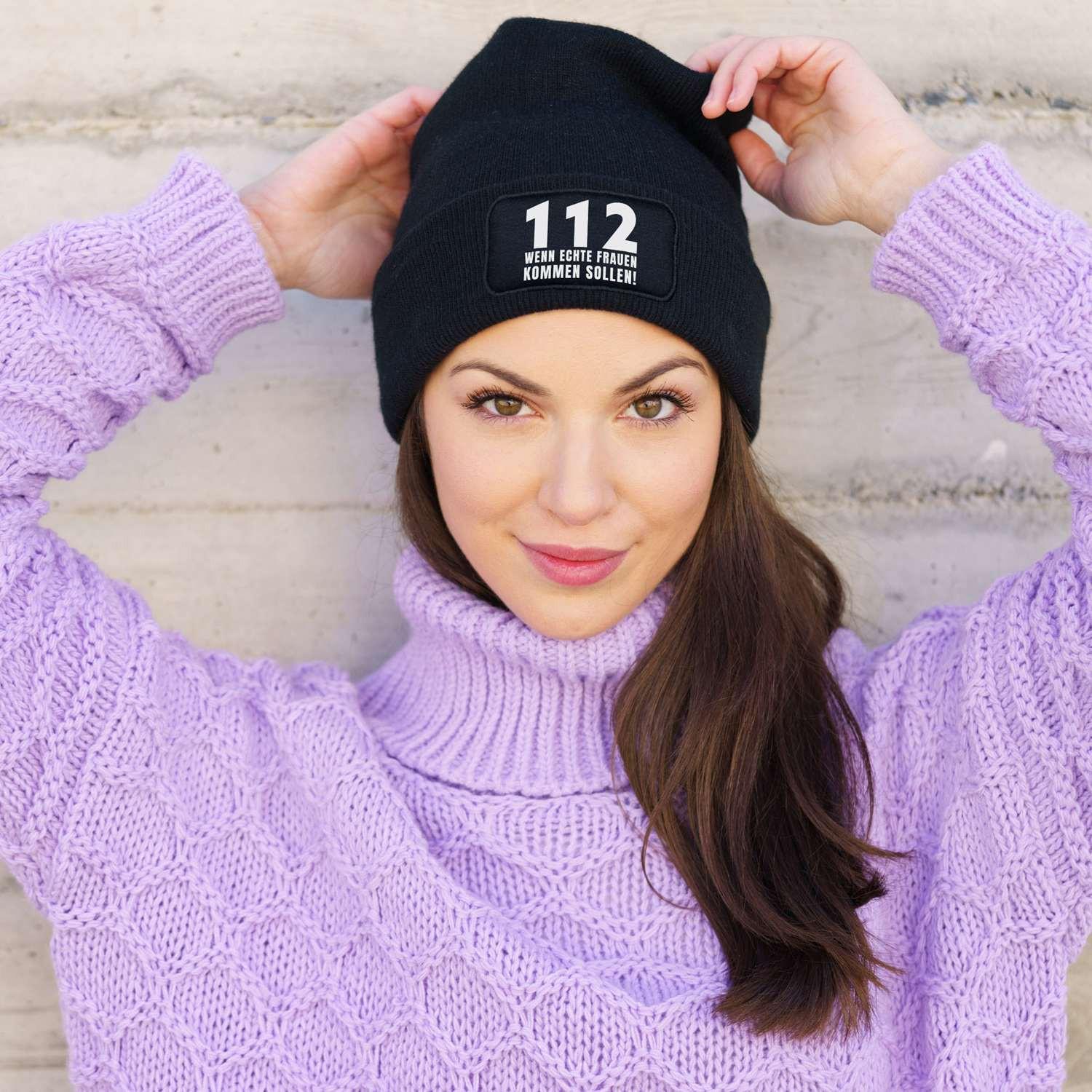 Beanie Mütze mit Spruch: 112 Wenn echte Frauen kommen sollen!