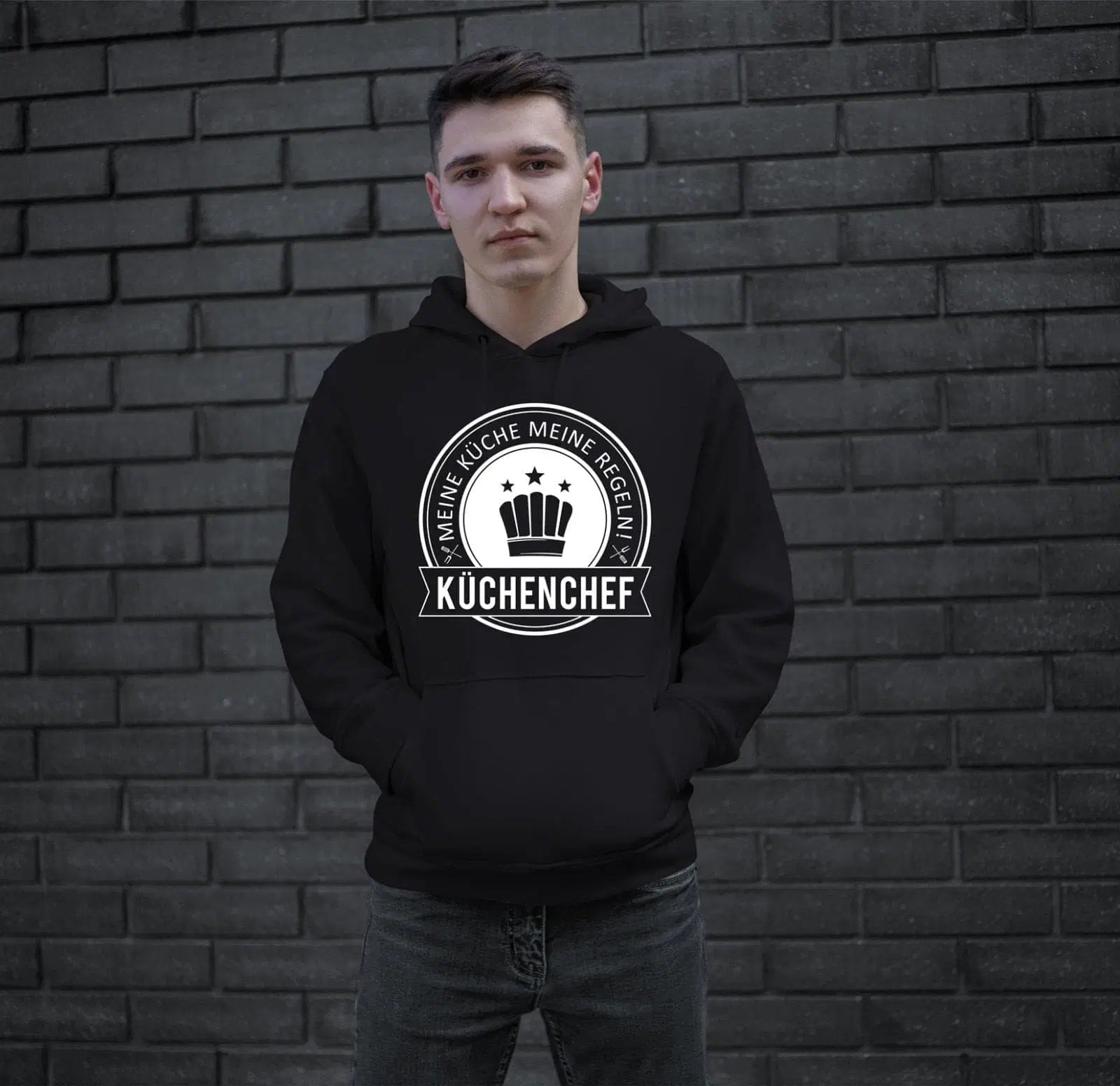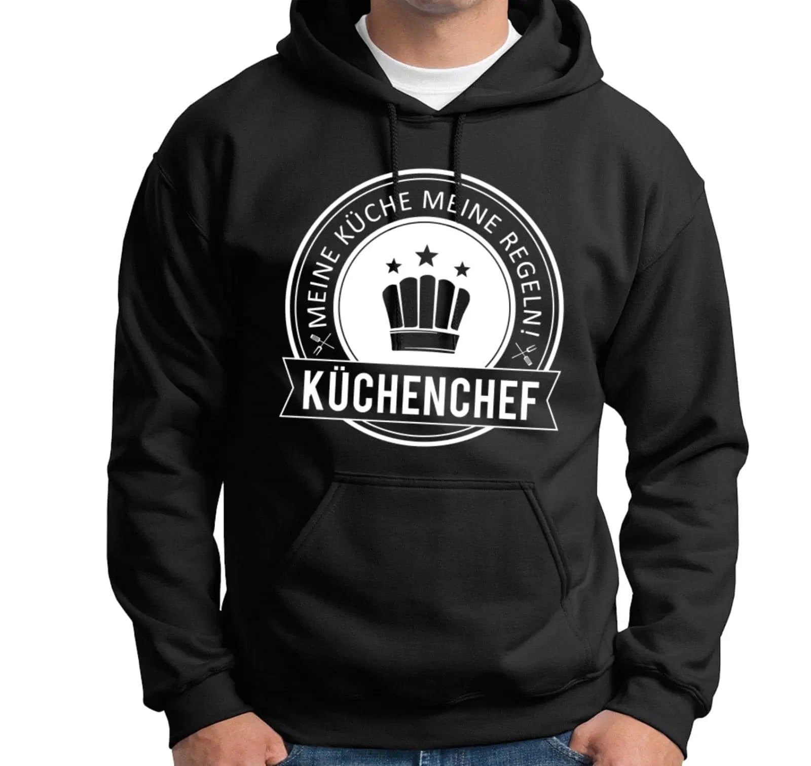 Hochwertiger Hoodie / Pullover mit Kapuze mit Motiv und Spruch: Küchenchef 👨🍳 Meine Küche 🍴 Meine Regeln