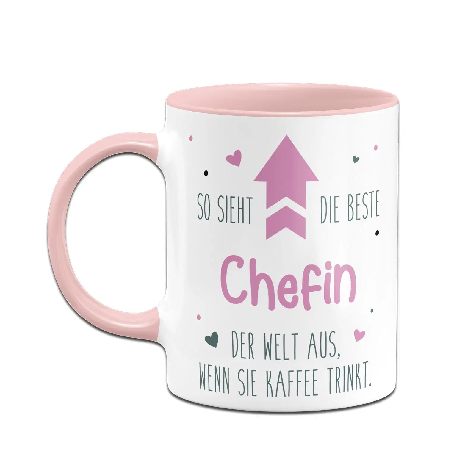 Tasse mit Spruch: So sieht die beste Chefin der Welt aus ​⬆️​ wenn sie Kaffee trinkt. 💗​