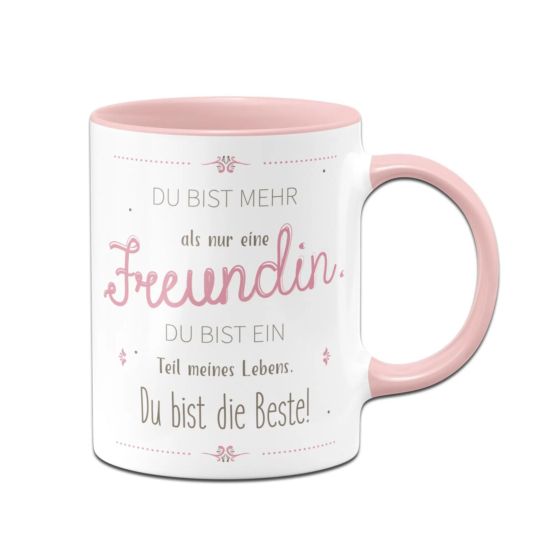 Tasse mit Spruch: Du bist mehr als nur eine Freundin, Du bist ein Teil meines Lebens. Du bist die Beste! 💗​