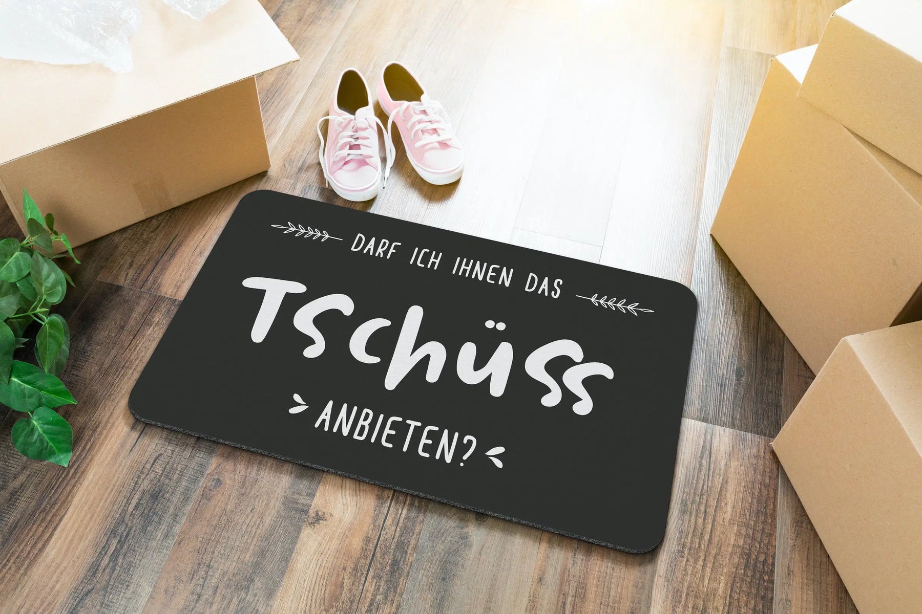 Fußmatte mit Spruch: Darf ich Ihnen das Tschüss anbieten?