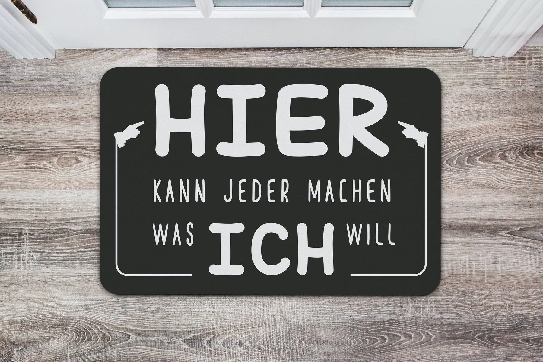 Fußmatte mit Spruch: Hier kann jeder machen was ich will 👈