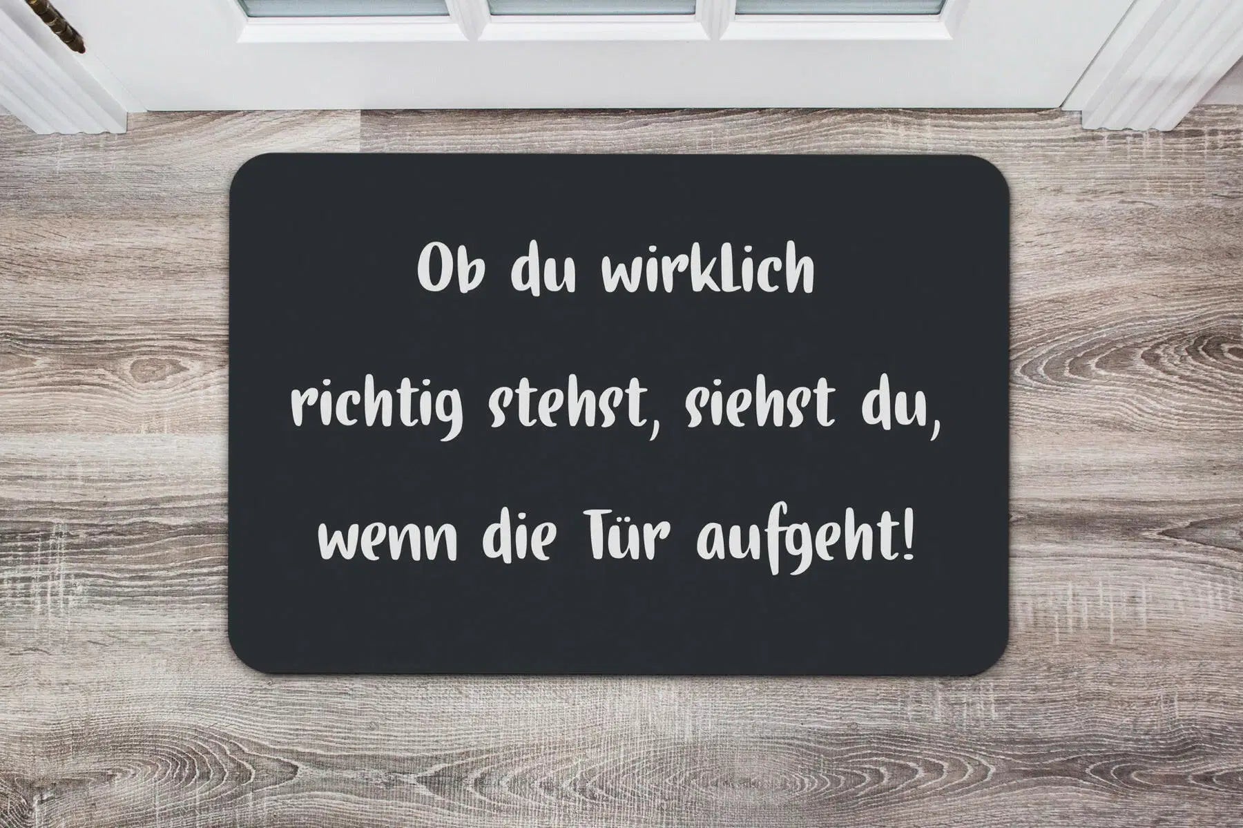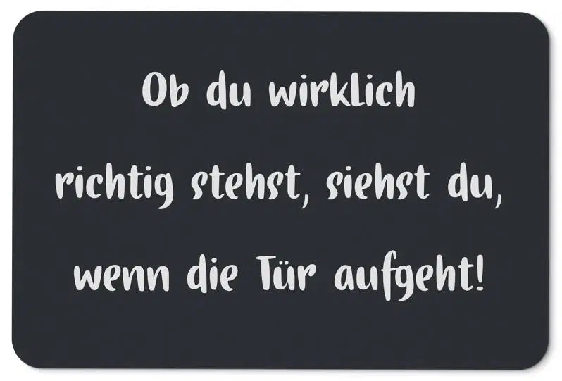 Fußmatte mit Spruch: Ob du wirklich richtig stehst, siehst du, wenn die Tür aufgeht!