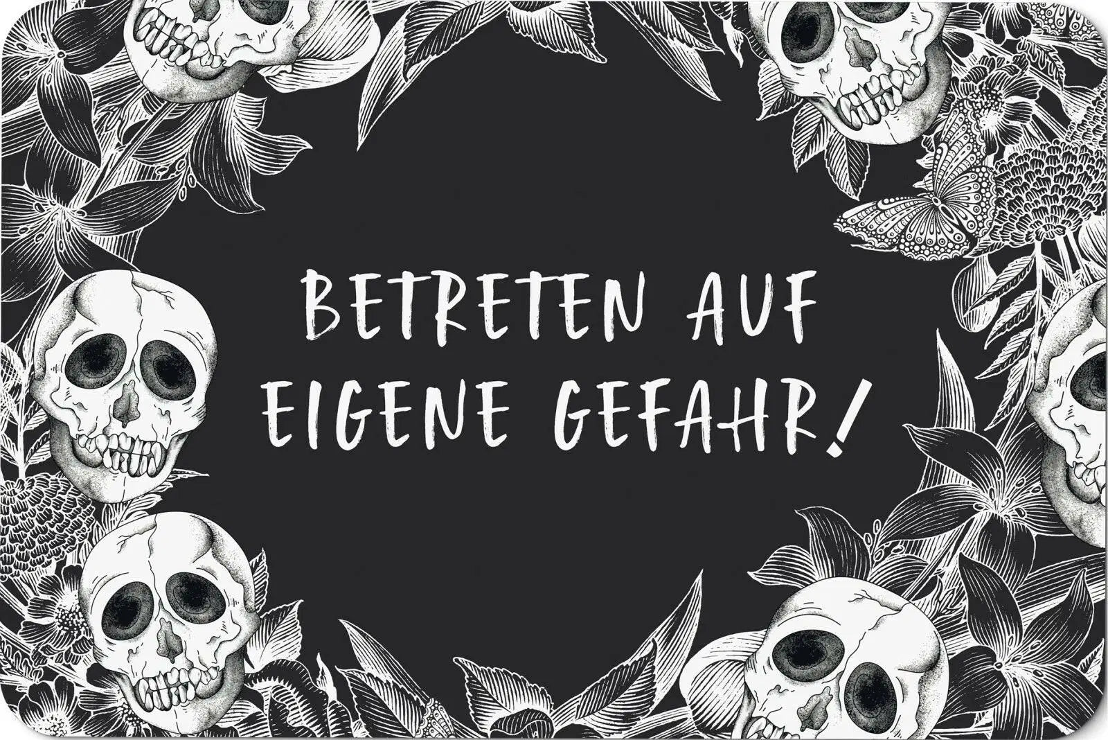 Fußmatte mit Totenkopf Motiv 💀 und Spruch: Betreten auf eigene Gefahr!