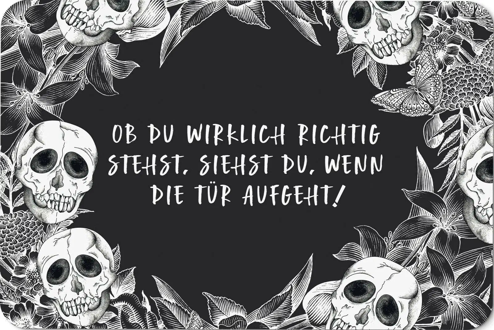 Fußmatte mit Totenkopf Motiv 💀 und Spruch: Ob Du wirklich richtig stehst, siehst Du, wenn die Tür aufgeht!