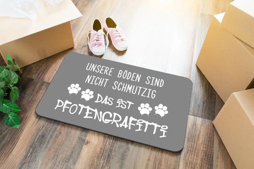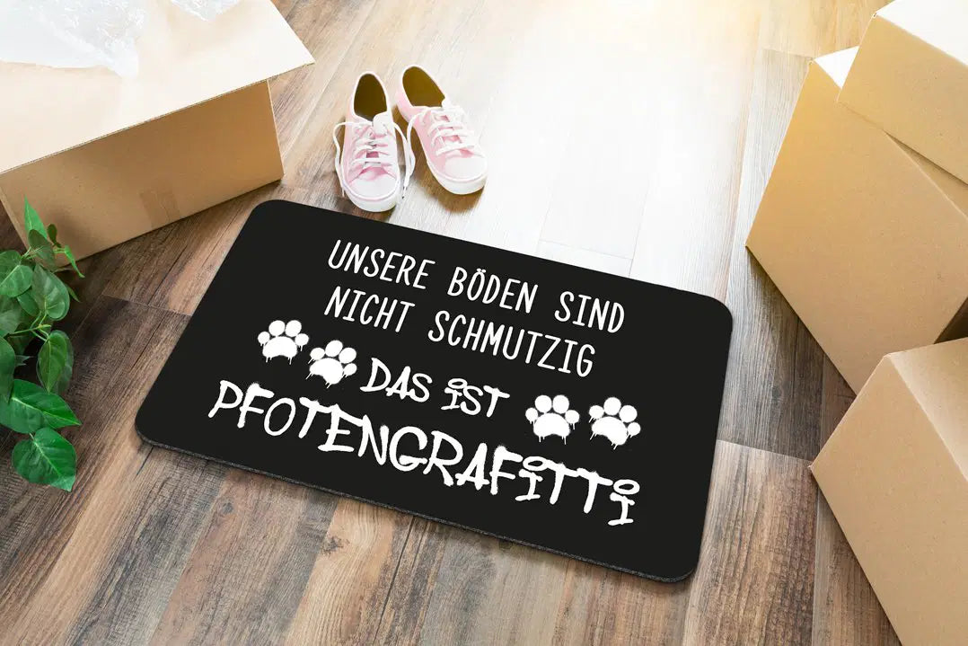 Fußmatte mit Spruch: Unsere Böden sind nicht schmutzig 🐾 Das ist Pfotengrafitti