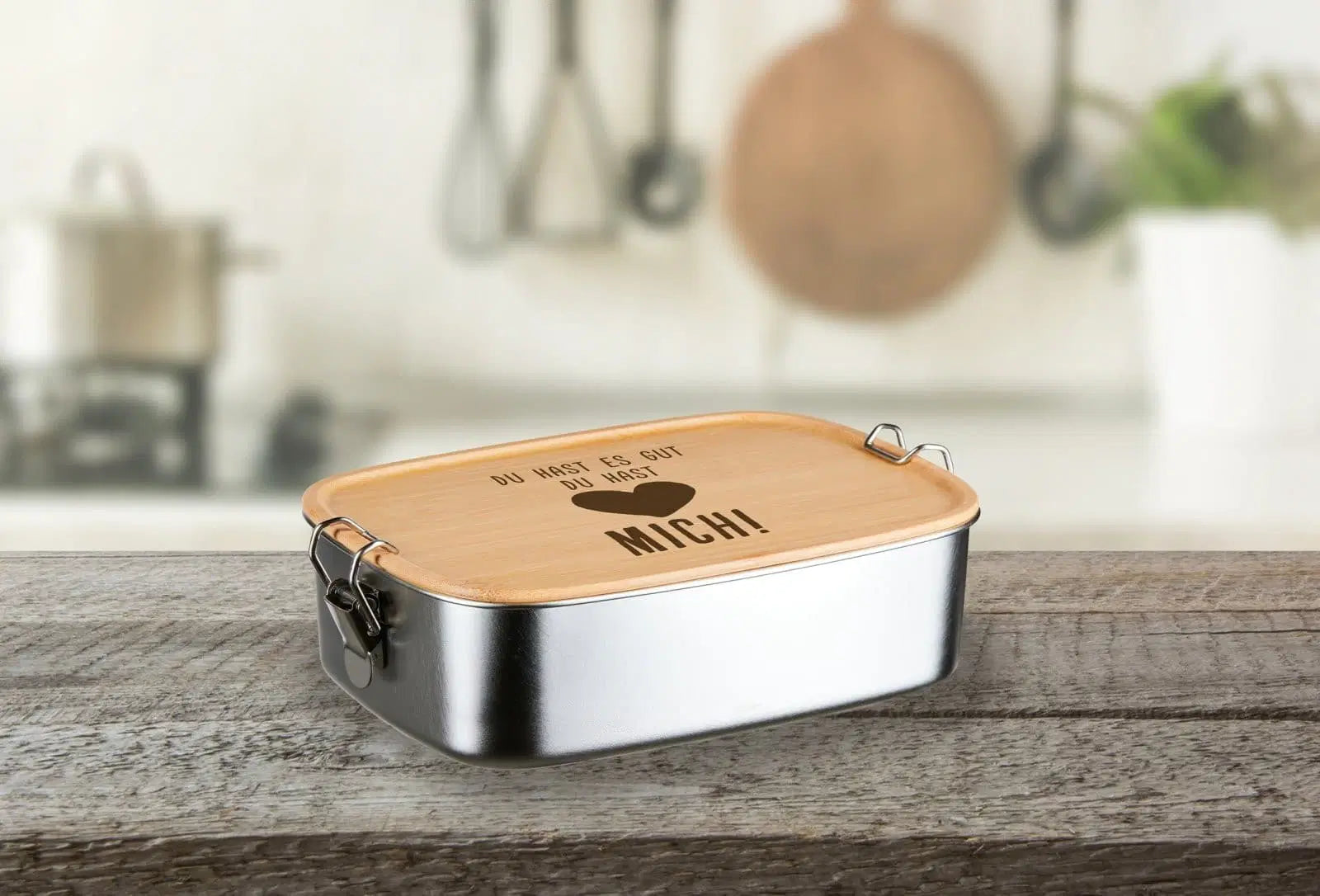 Brotdose aus Edelstahl mit Bambusdeckel & Verschluss