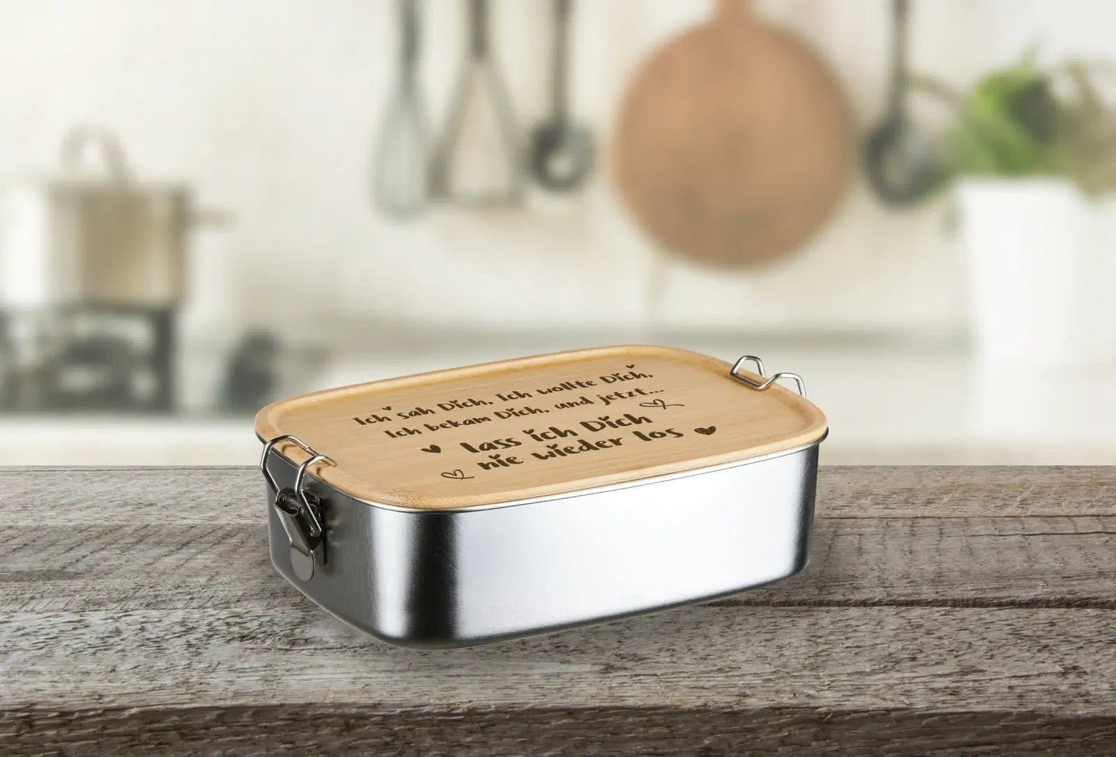 Brotdose aus Edelstahl mit Bambusdeckel & Verschluss