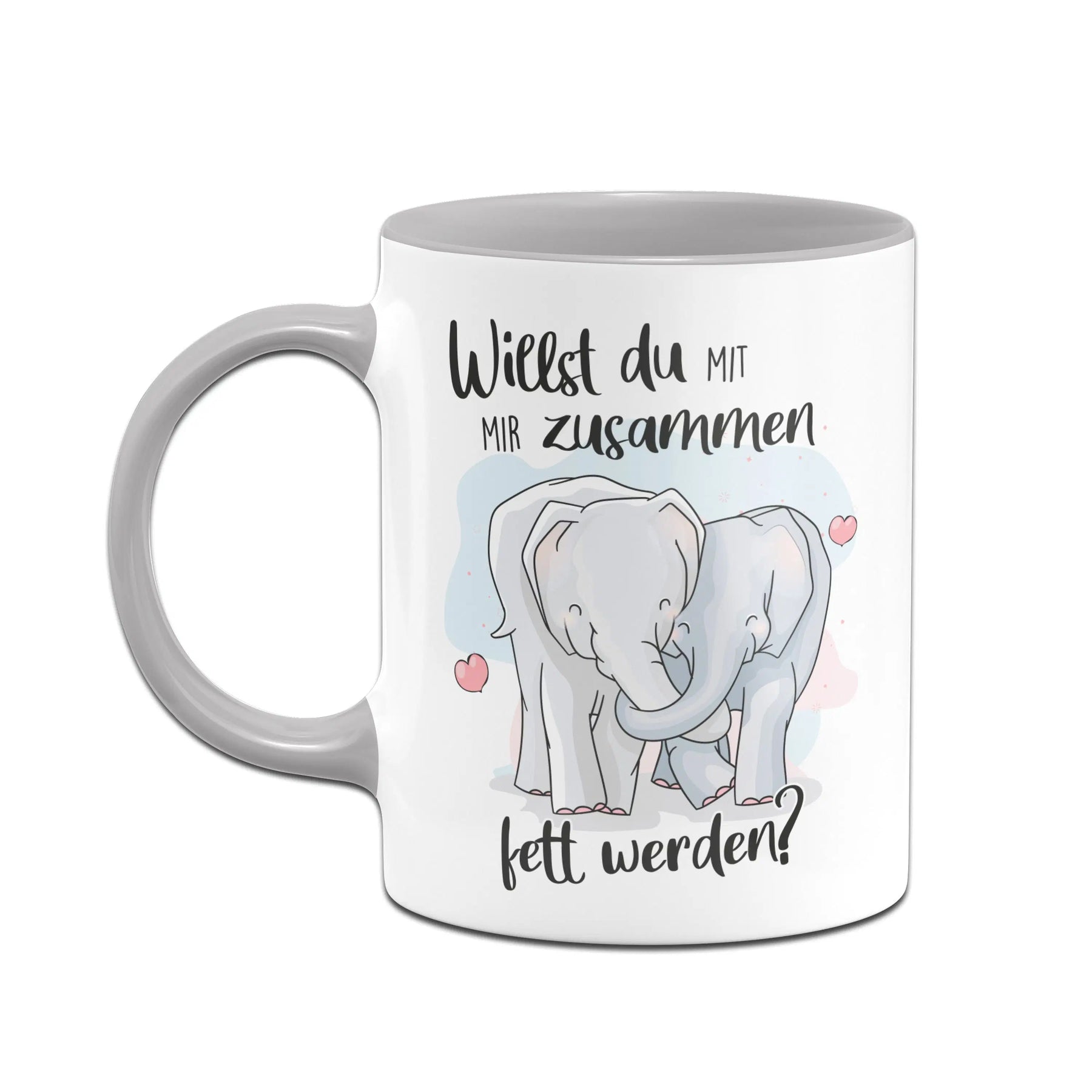 Tasse mit Spruch: Willst du mit mir zusammen fett werden? 🐘