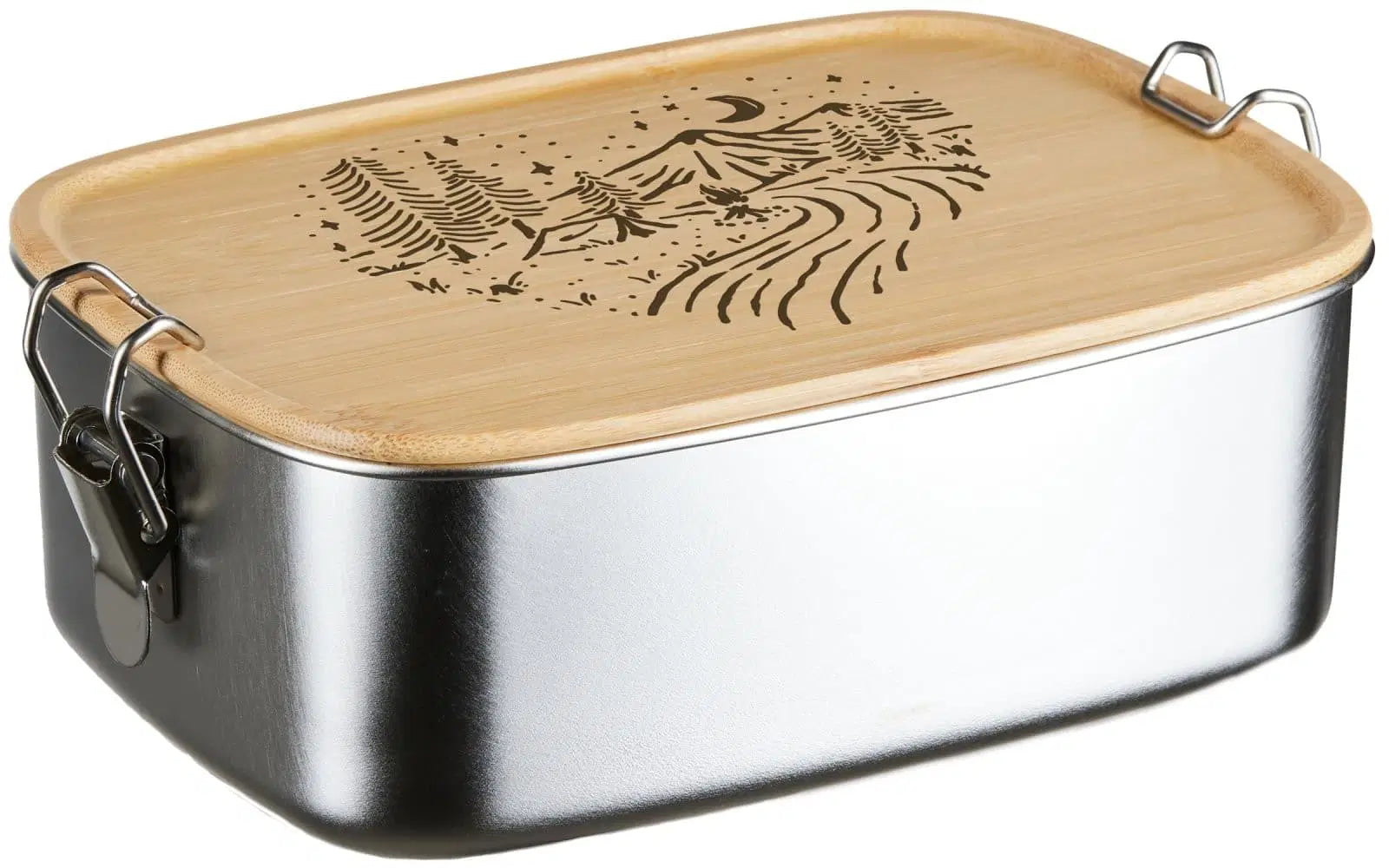Brotdose aus Edelstahl mit Bambusdeckel & Verschluss