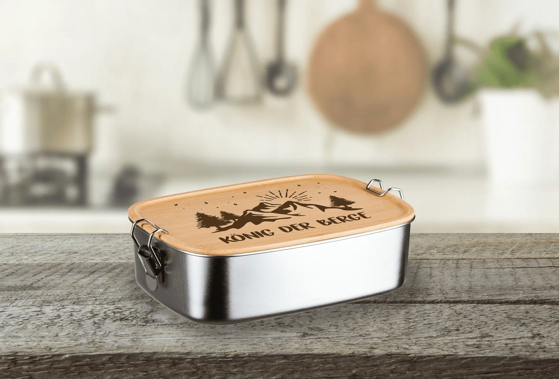 Brotdose aus Edelstahl mit Bambusdeckel & Verschluss