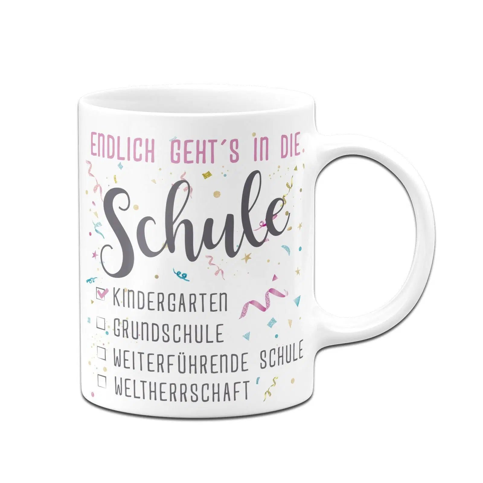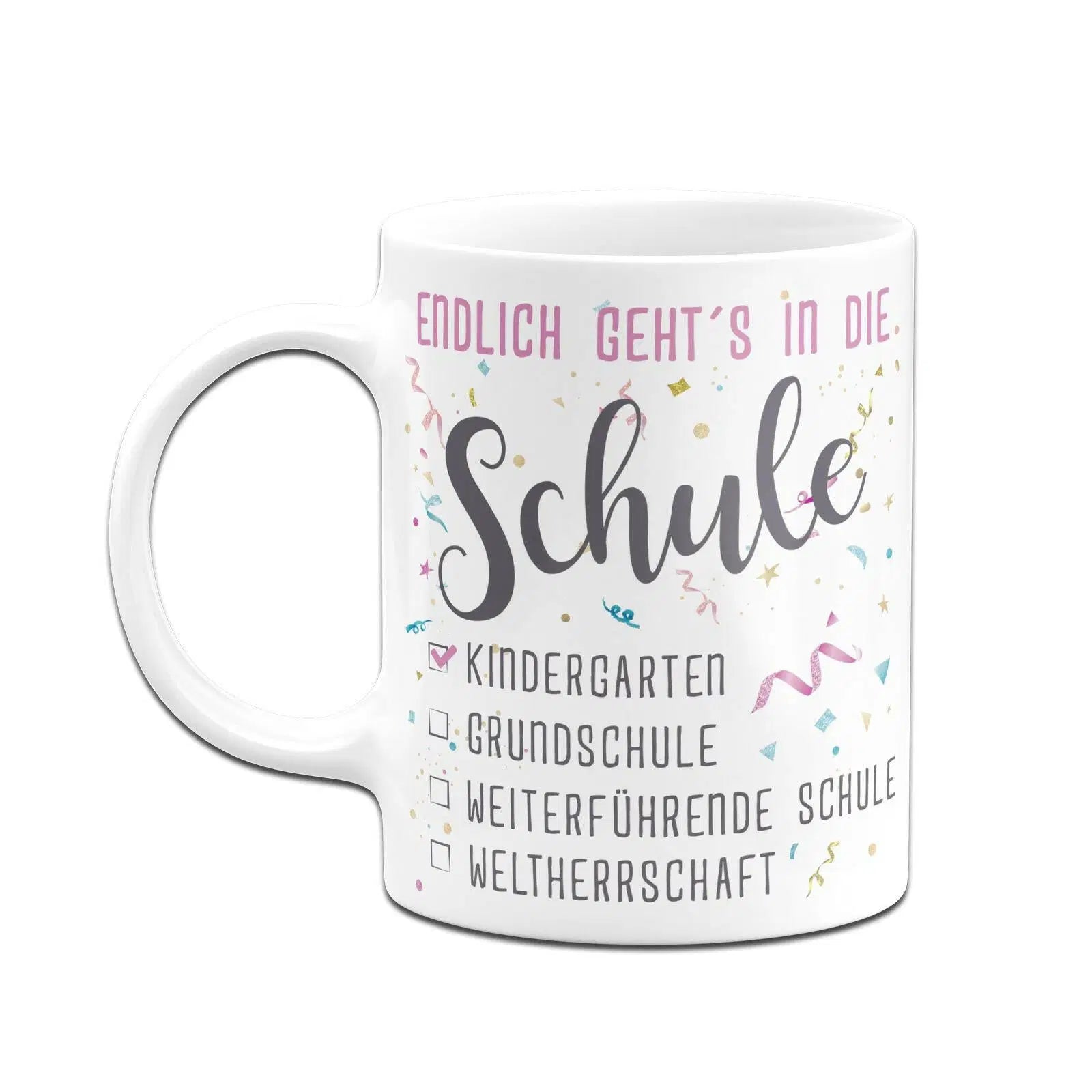 Tasse mit Spruch: Endlich geht´s in die Schule 🎒