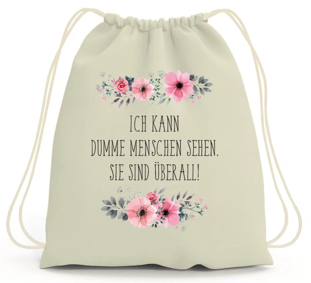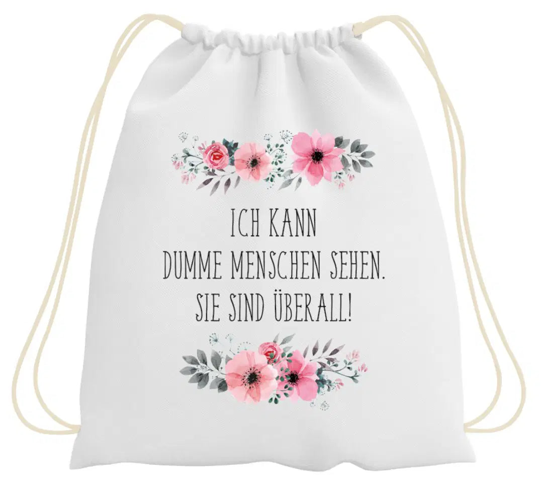 Blümchen-Turnbeutel - Rucksack 🌸 mit Spruch: Ich kann dumme Menschen sehen. Sie sind überall!