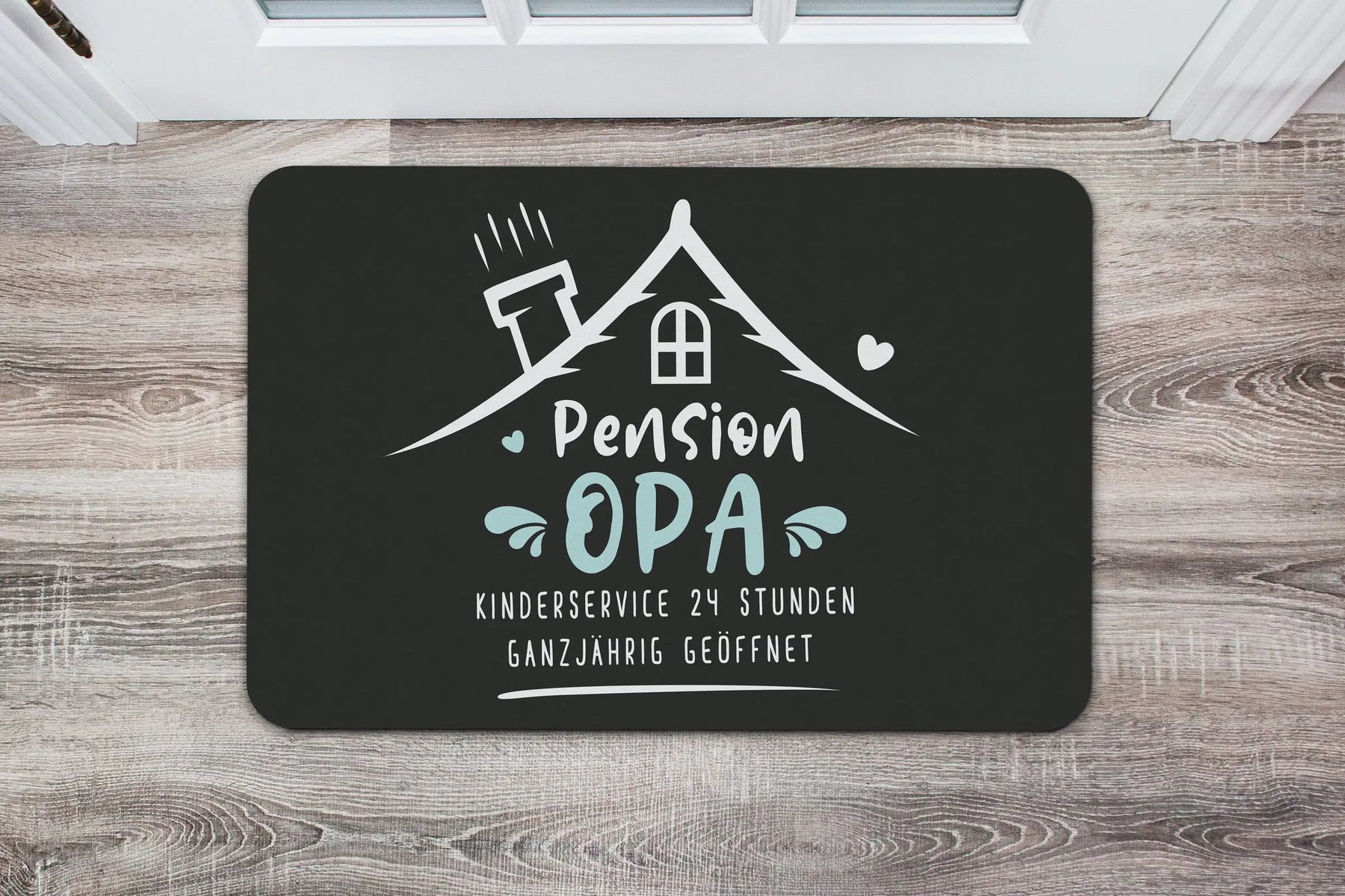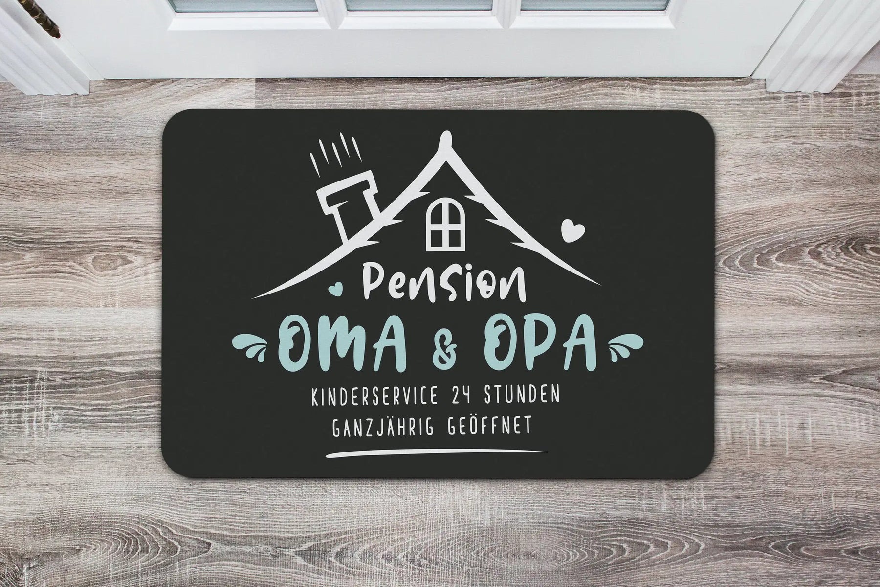 Fußmatte mit Spruch: Pension Oma & Opa ♥ Kinderservice 24 Stunden - Ganzjährig geöffnet