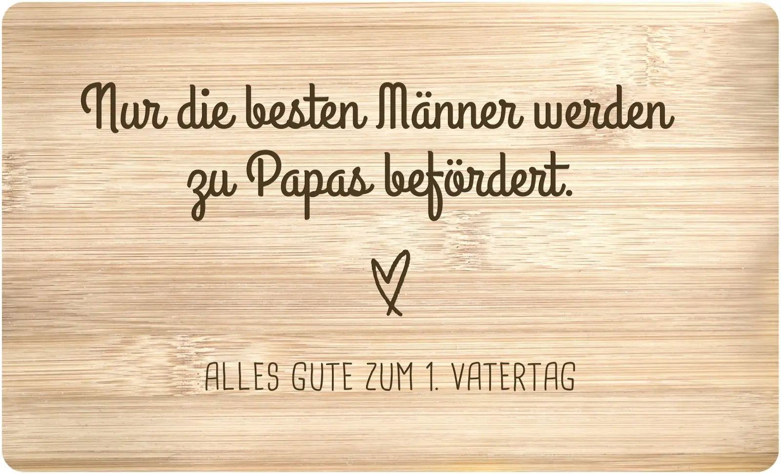 Echtholz Frühstücksbrettchen aus unbehandelter Buche mit Spruch: Nur die besten Männer werden zu Papas befördert. 💙 Alles Gute zum 1. Vatertag.