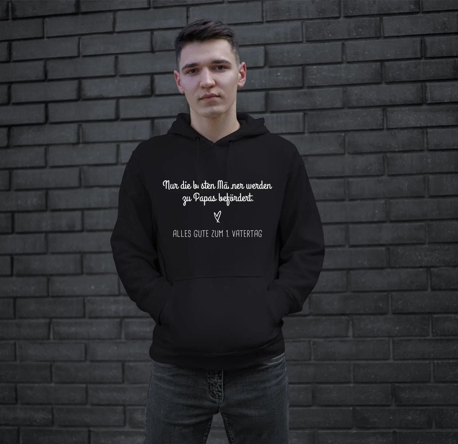 Hochwertiger Hoodie / Pullover mit Kapuze und Spruch: Nur die besten Männer werden zu Papas befördert. 💙 Alles Gute zum 1. Vatertag.