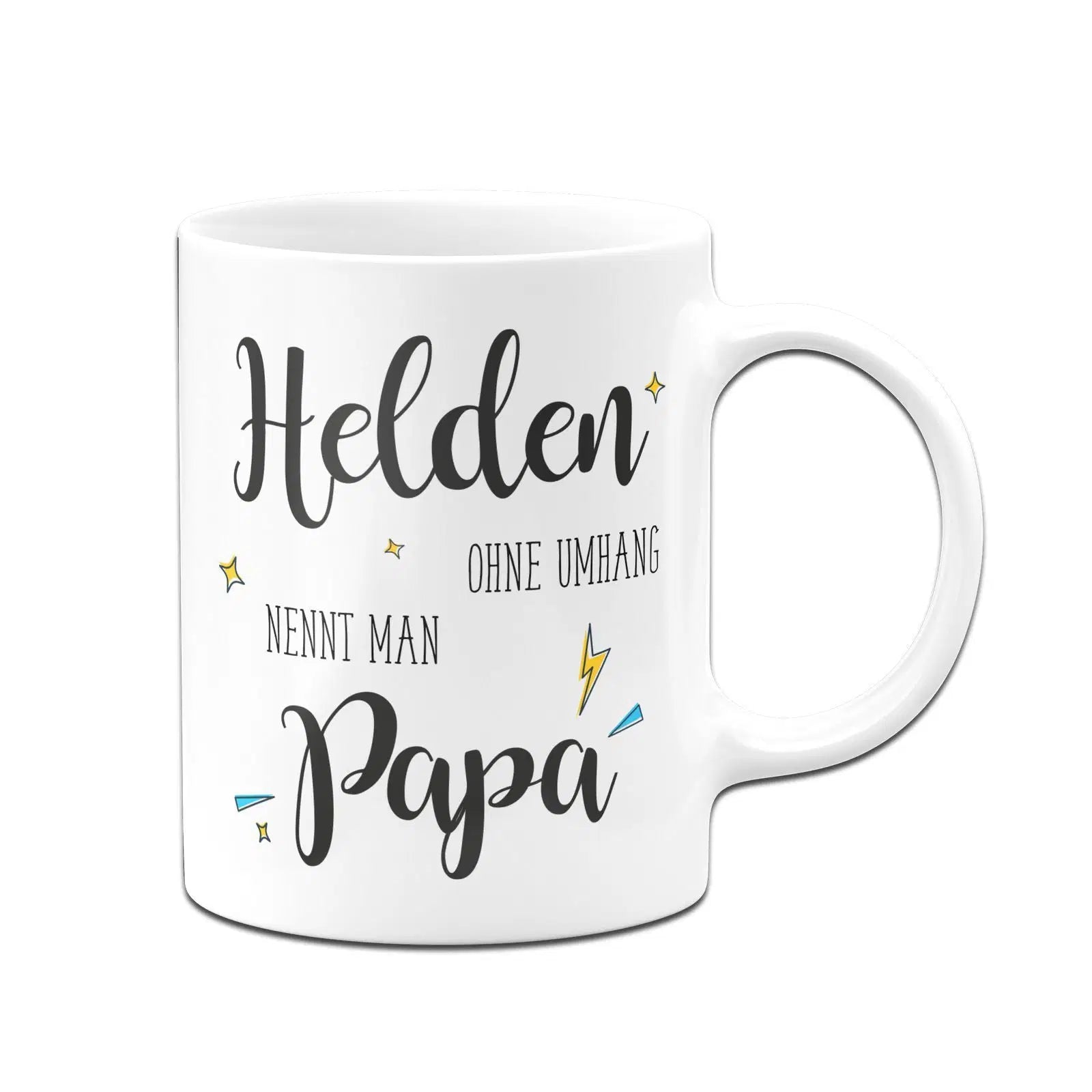 Tasse mit Spruch: Helden ohne Umhang nennt man Papa ⭐