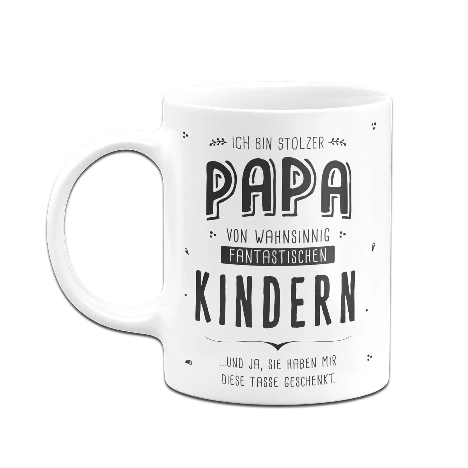 Tasse mit Spruch: Ich bin stolzer Papa von wahnsinnig fantastischen Kindern ...und ja, sie haben mir diese Tasse geschenkt. ⭐