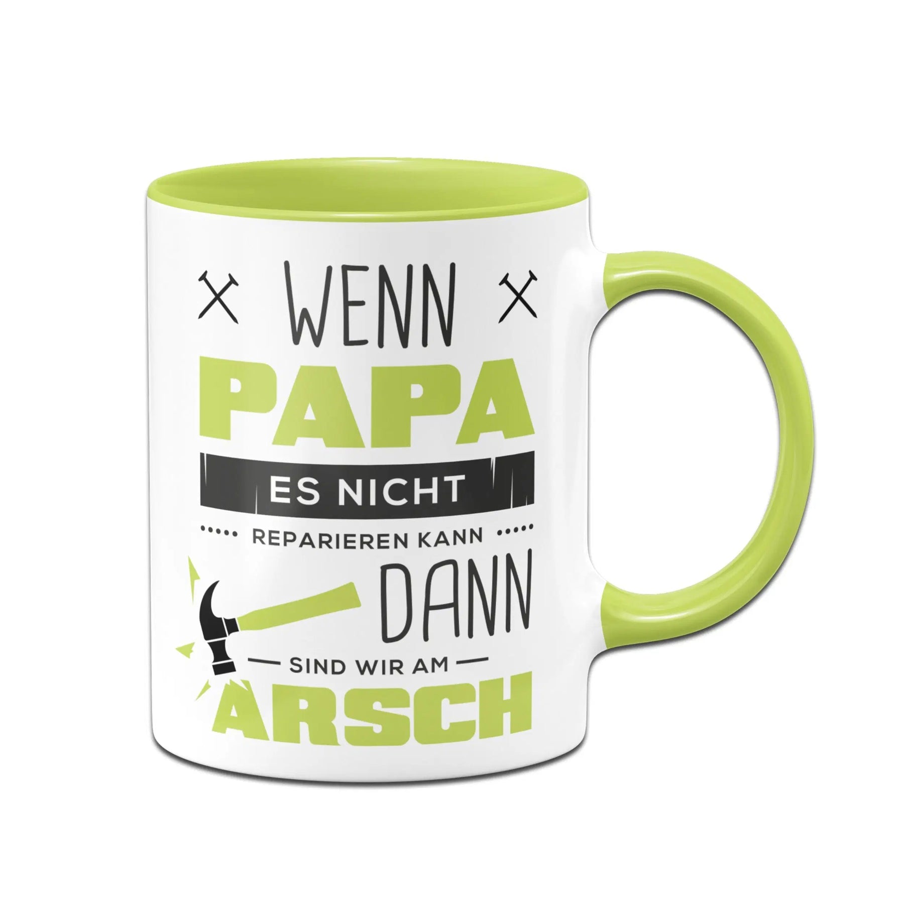 Tasse mit Spruch: Wenn Papa es nicht reparieren kann, dann sind wir am Arsch 🔨