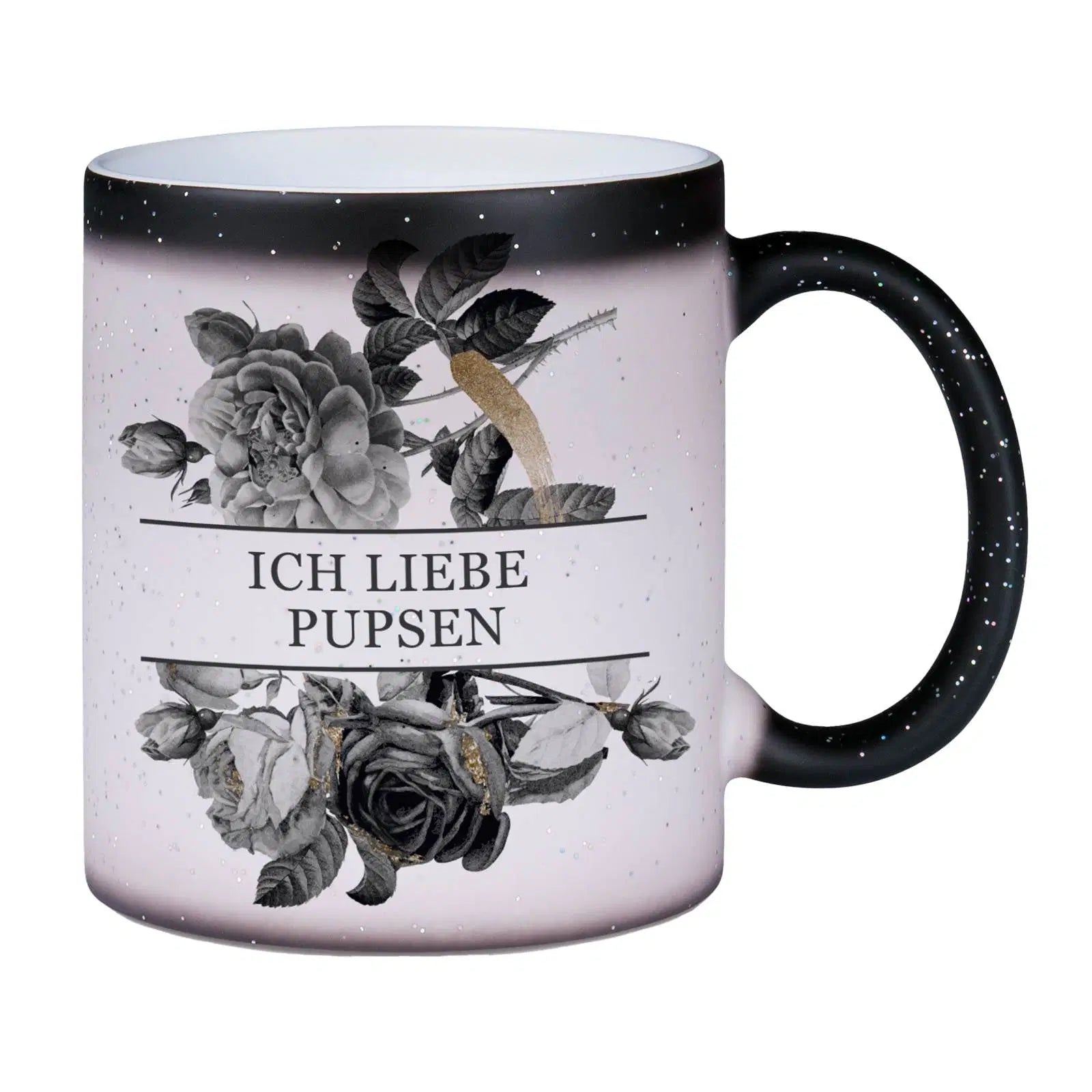 Black Rose 🖤🌹 Glitzer-Zaubertasse mit Spruch: Ich liebe pupsen