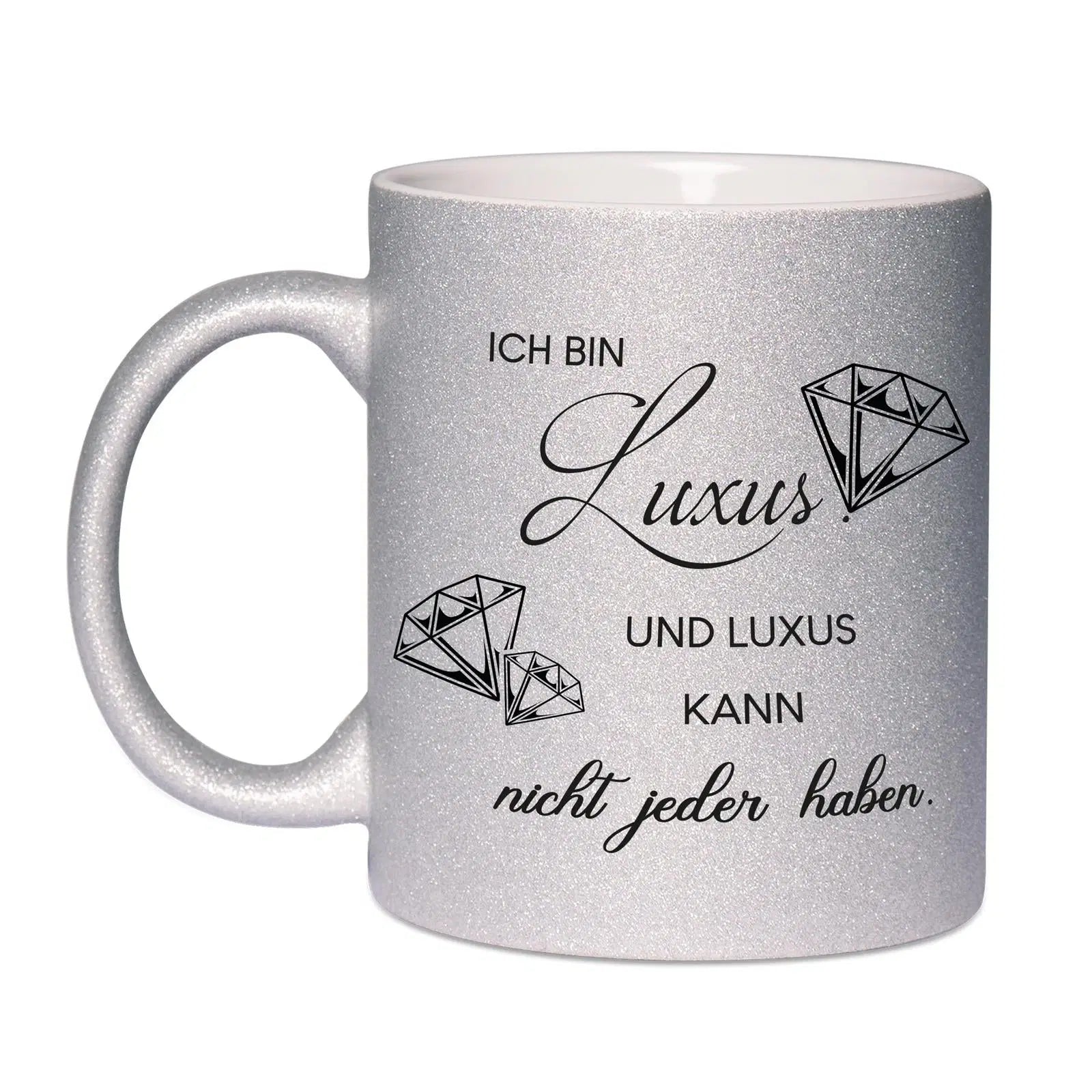 Glitzertasse mit Spruch: Ich bin Luxus. Und Luxus kann nicht jeder haben. 💎
