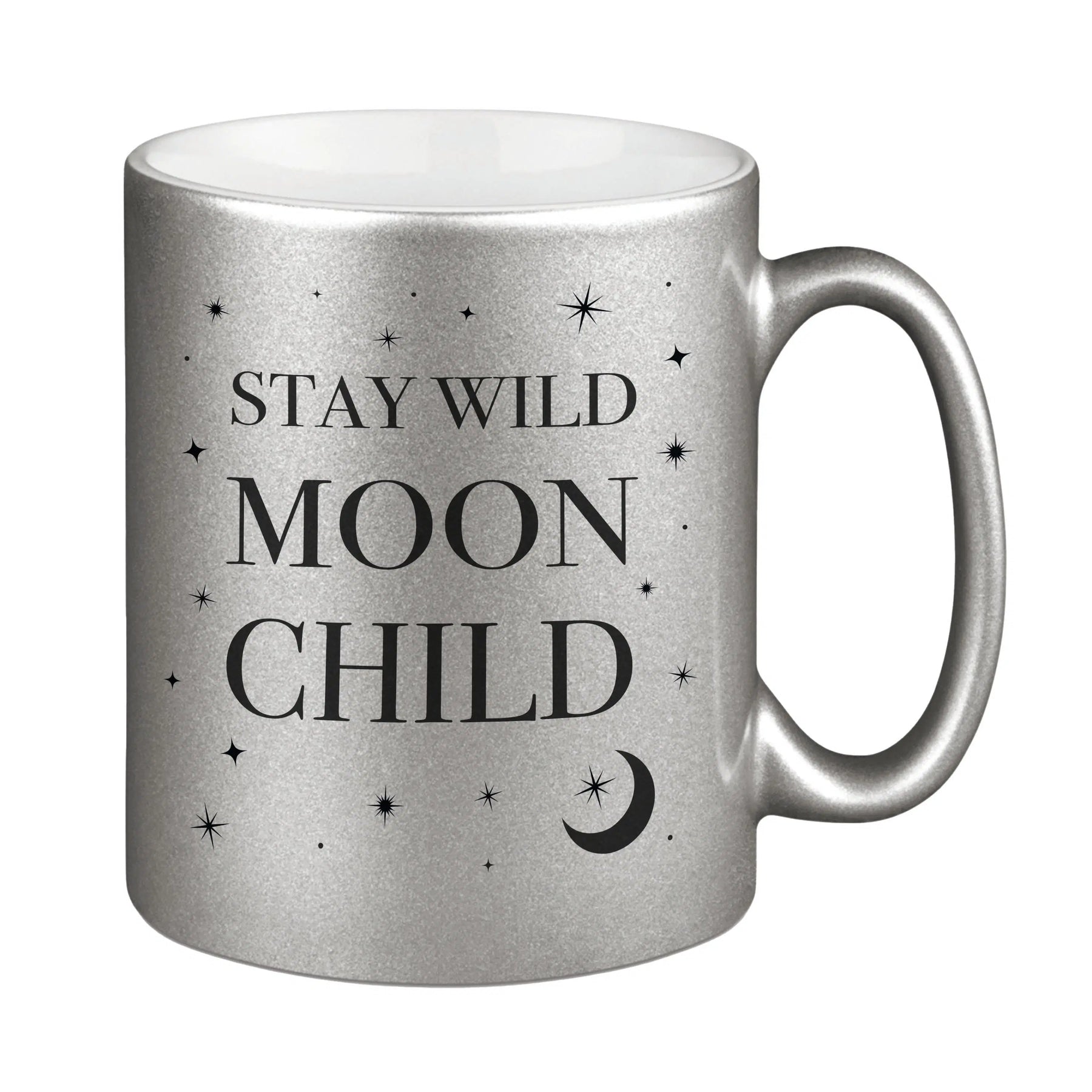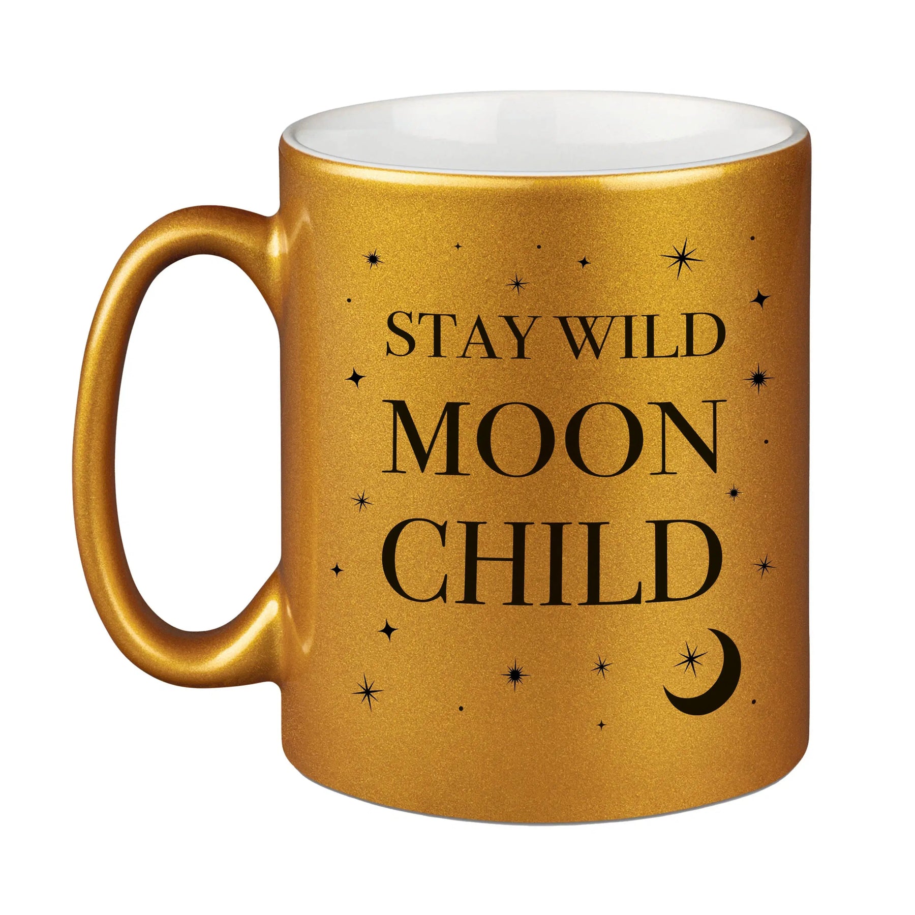 Metallic-Tasse mit Spruch: ✨ STAY WILD MOON CHILD✨ (Englisch)