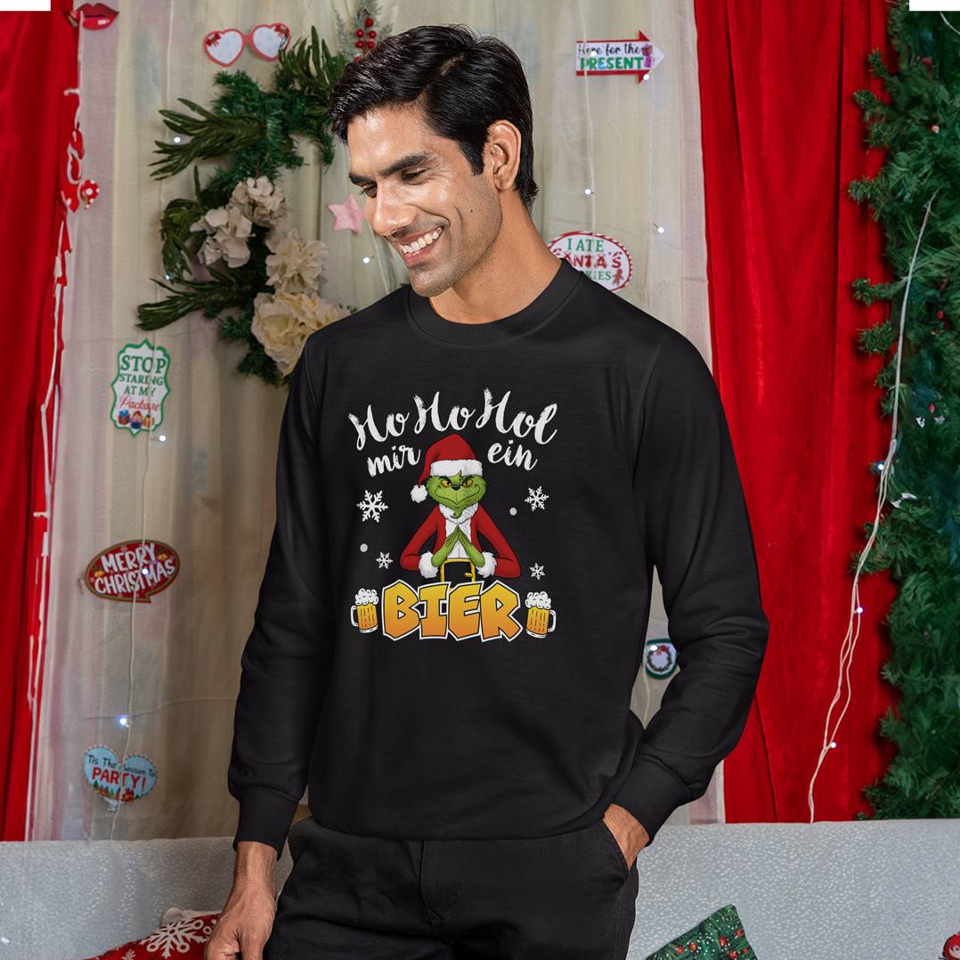 Hochwertiger Pullover mit Grinch Motiv und Spruch: Ho Ho Hol mir ein Bier 🍺