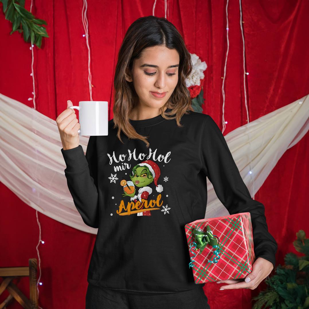 Suchst du ein Weihnachtsgeschenk mit Humor, das nicht nur warmhält, sondern auch garantiert für Lacher sorgt? Dieser Miss Grinch Pullover bringt es mit seinem frechen Spruch „Ho Ho Hol mir Aperol“ auf den Punkt und ist die perfekte Mischung aus Gemütlichkeit und Anti-Weihnachts-Charme. Mit seinem witzigen Design bist du bestens gewappnet für kalte Wintertage und feucht-fröhliche Abende mit Aperol – immer mit einem Augenzwinkern.