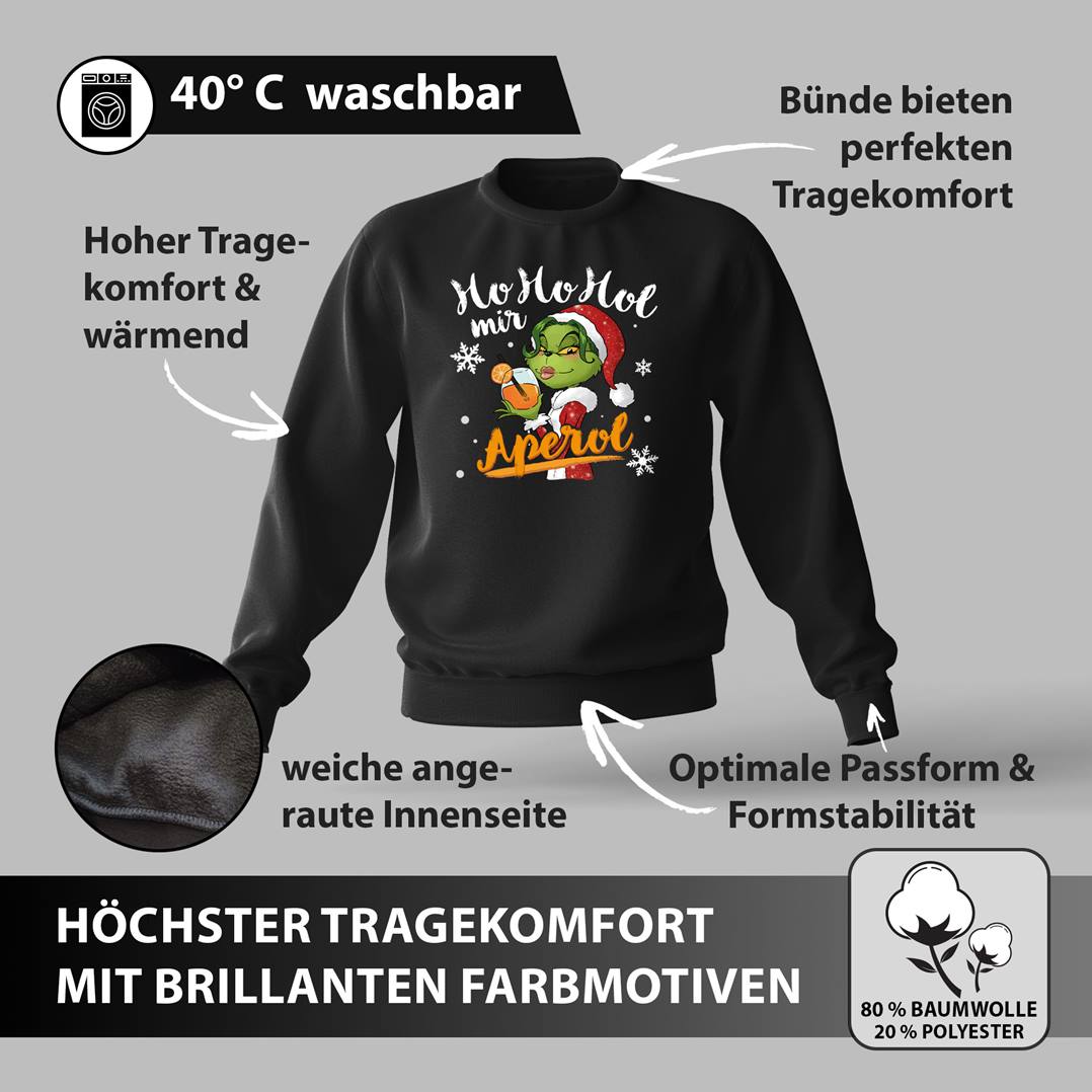 Hochwertiger Pullover mit Miss Grinch Motiv und Spruch: Ho Ho Hol mir Aperol 🍹