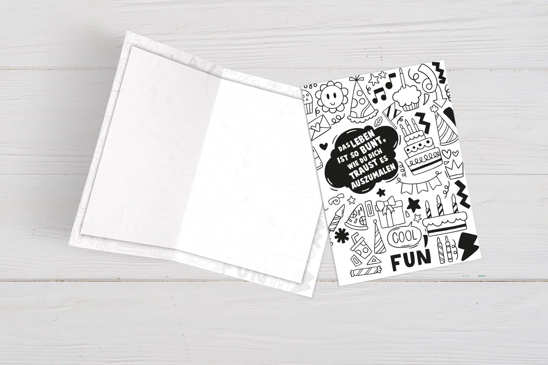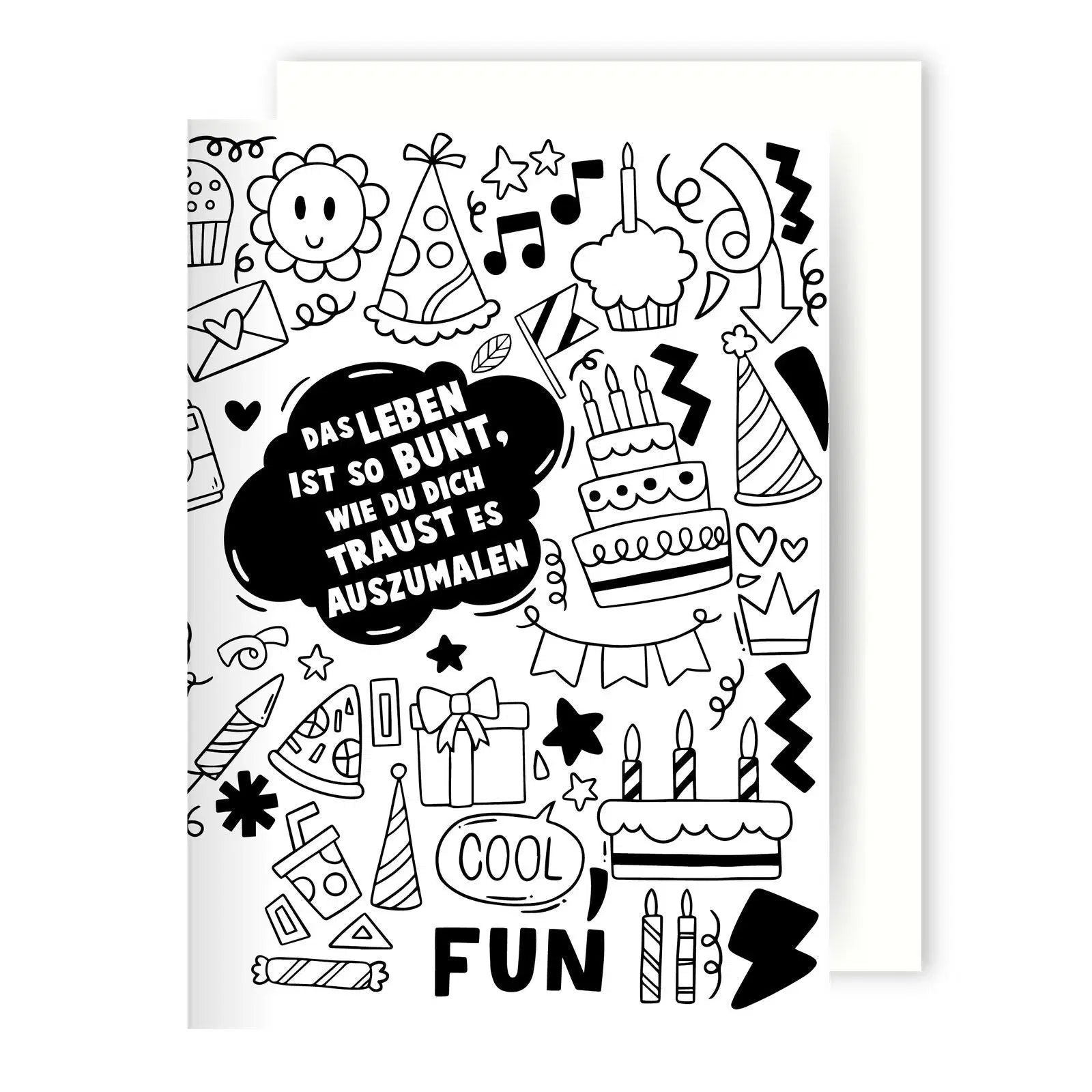 Grußkarte - Ausmalkarte - Das Leben ist so bunt, wie Du dich traust es auszumalen