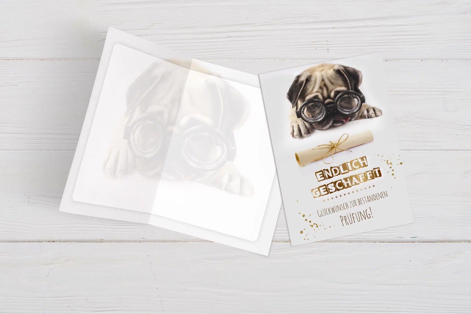 Grußkarte mit Spruch: Endlich geschafft - Glückwunsch zur bestandenen Prüfung!
