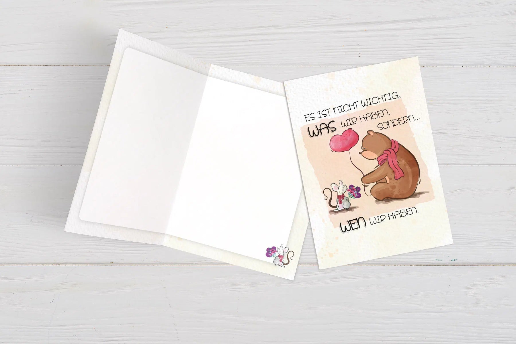 Grußkarte mit Spruch: Es ist nicht wichtig, was wir haben... sondern wen wir haben. ​🧸​🐭​